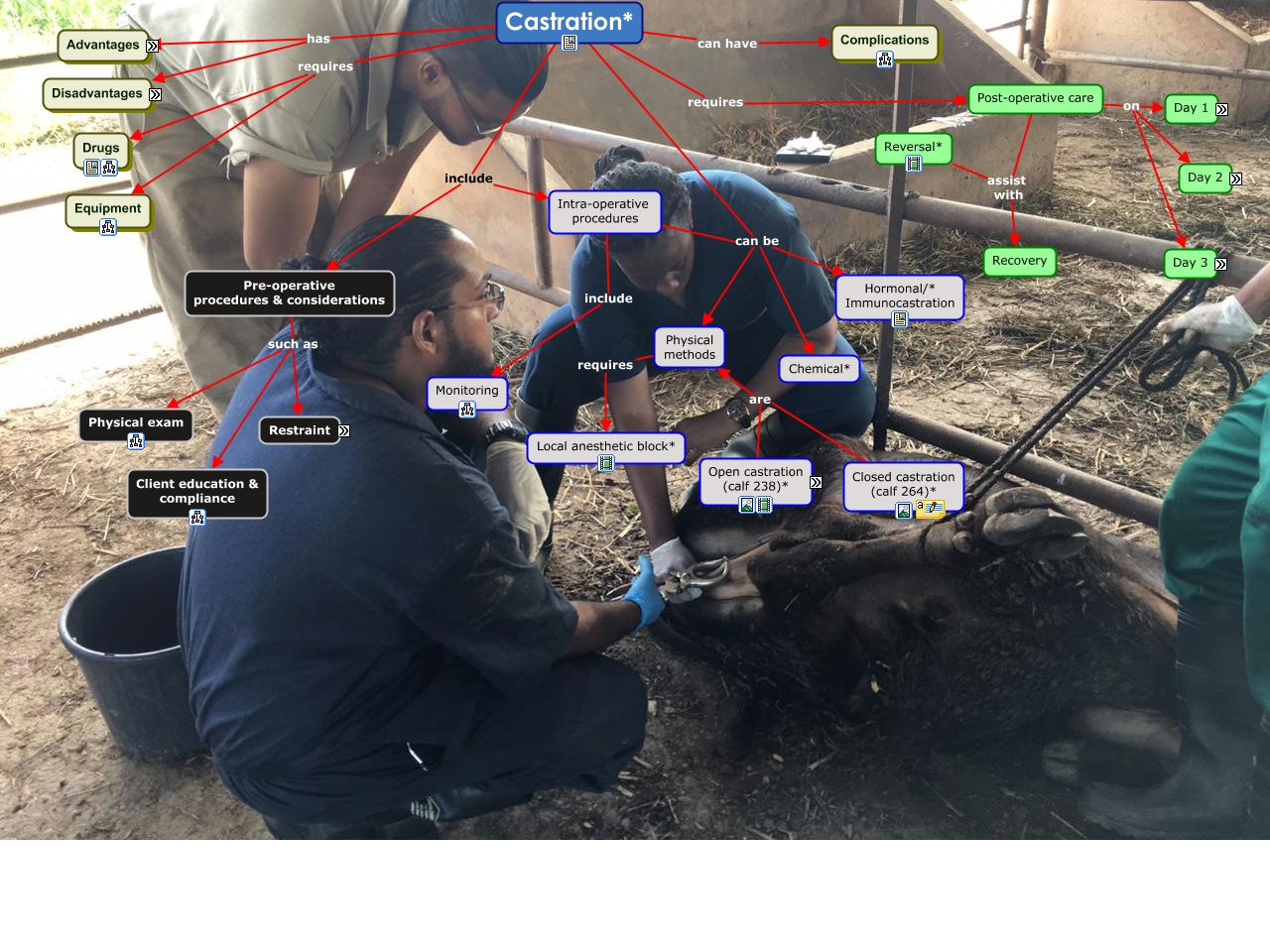 This Concept Map, created with IHMC CmapTools, has information related to: Lab 5 final, Why castrate? because it reduces testosterone levels, Pre-operative procedures & considerations such as Client education & compliance, It decreases FCR therefore Daily weight gain is decreased, Disadvantages of Castration | It decreases FCR, Post-operative care assist with Recovery, it reduces testosterone levels which makes the animals less aggressive, Castration* can be Physical methods, Intra-operative procedures can be Chemical*, It decreases FCR therefore The meat is lower and leaner, Castration* include Pre-operative procedures & considerations, Castration* has Advantages, Intra-operative procedures include Monitoring, leads to easier management in the presence of female animals which reduces indiscriminate breeding, Pre-operative procedures & considerations such as Physical exam, Closed castration (calf 264)* are Physical methods, Castration* can be Chemical*, Castration* include Intra-operative procedures, Reversal* assist with Recovery, Post-operative care on Day 2, Castration* requires Post-operative care