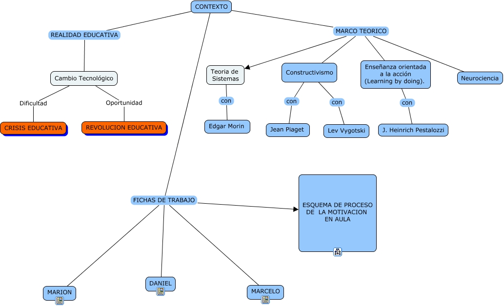 Este Cmap, tiene información relacionada con: ABP -Contexto, Constructivismo con Lev Vygotski, Cambio Tecnológico Dificultad CRISIS EDUCATIVA, CONTEXTO FICHAS DE TRABAJO ESQUEMA DE PROCESO DE LA MOTIVACION EN AULA, Constructivismo con Jean Piaget, CONTEXTO MARCO TEORICO Enseñanza orientada a la acción (Learning by doing)., CONTEXTO MARCO TEORICO Constructivismo, CONTEXTO FICHAS DE TRABAJO MARCELO, CONTEXTO MARCO TEORICO Neurociencia, Teoria de Sistemas con Edgar Morin, Cambio Tecnológico Oportunidad REVOLUCION EDUCATIVA, CONTEXTO FICHAS DE TRABAJO DANIEL, Enseñanza orientada a la acción (Learning by doing). con J. Heinrich Pestalozzi, CONTEXTO FICHAS DE TRABAJO MARION, CONTEXTO REALIDAD EDUCATIVA Cambio Tecnológico, CONTEXTO MARCO TEORICO Teoria de Sistemas