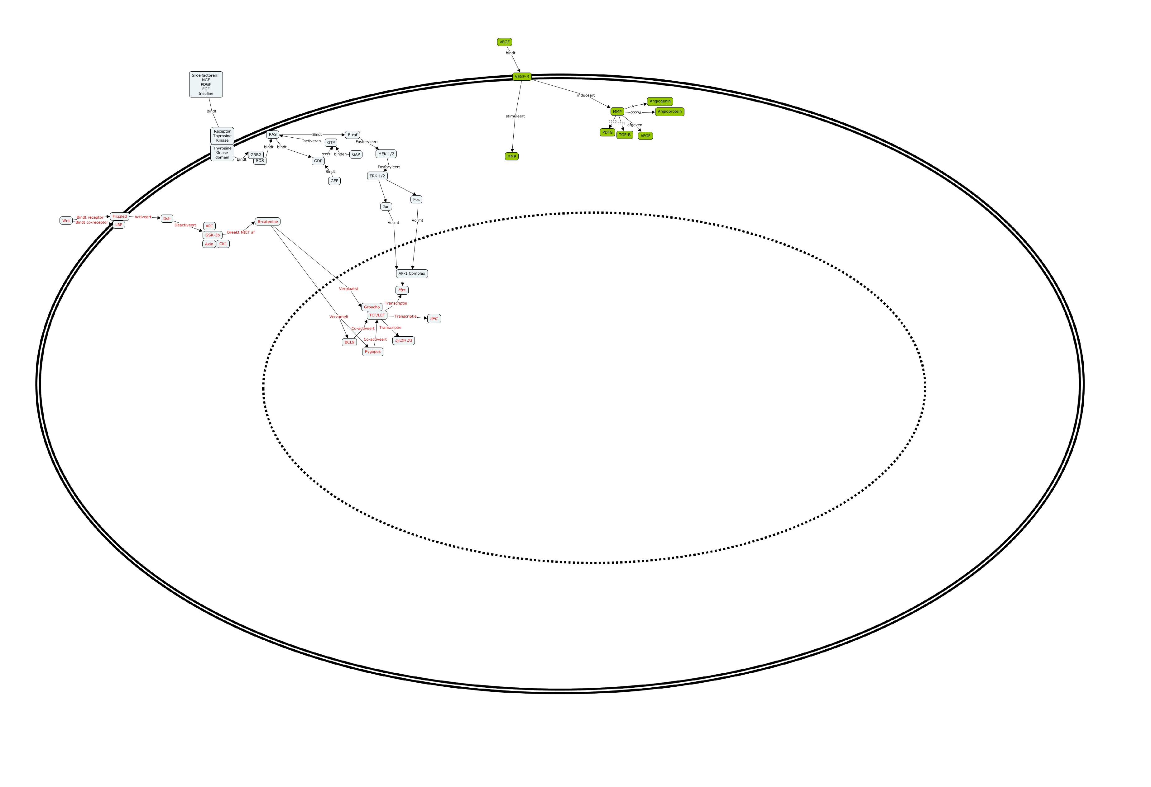 Deze Concept Map heeft informatie gerelateerd aan: 2A RTK's and RAS, Wnt Bindt co-receptor LRP, MMP A Angiogenin, Fos Vormt AP-1 Complex, MMP ???? PDFG, VEGF bindt VEGF-R, Jun Vormt AP-1 Complex, ERK 1/2 ???? Fos, VEGF-R induceert MMP, GAP binden GTP, GSK-3b Breekt NIET af B-catenine, VEGF-R stimuleert MMP, Groeifactoren: NGF PDGF EGF Insuline Bindt Receptor Thyrosine Kinase, RAS bindt GDP, B-catenine Verzamelt Pygopus, SOS bindt RAS, TCF/LEF Transcriptie cyclin D1, MEK 1/2 Fosforyleert ERK 1/2, Frizzled Activeert Dsh, B-catenine Verplaatst Groucho, B-catenine Verzamelt BCL9