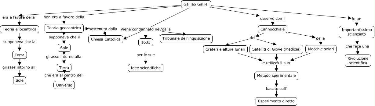 Questa Cmap, creata con IHMC CmapTools, contiene informazioni relative a: 5. Galileo Galilei, Terra che era al centro dell' Universo, Galileo Galilei Viene condannato nel/dalla 1633, Cannocchiale dei Satelliti di Giove (Medìcei), Macchie solari e utilizzò il suo Metodo sperimentale, Galileo Galilei non era a favore della Teoria geocentrica, Teoria eliocentrica supponeva che la Terra, Cannocchiale delle Macchie solari, Galileo Galilei osservò con il Cannocchiale, Metodo sperimentale basato sull' Esperimento diretto, 1633 per le sue Idee scientifiche, Crateri e alture lunari e utilizzò il suo Metodo sperimentale, Teoria geocentrica supponeva che il Sole, Galileo Galilei Viene condannato nel/dalla Tribunale dell'inquisizione, Sole girasse intorno alla Terra, Satelliti di Giove (Medìcei) e utilizzò il suo Metodo sperimentale, Galileo Galilei Viene condannato nel/dalla Chiesa Cattolica, Galileo Galilei fu un Importantissimo scienziato, Terra girasse intorno all' Sole, Importantissimo scienziato che fece una Rivoluzione scientifica, Galileo Galilei era a favore della Teoria eliocentrica