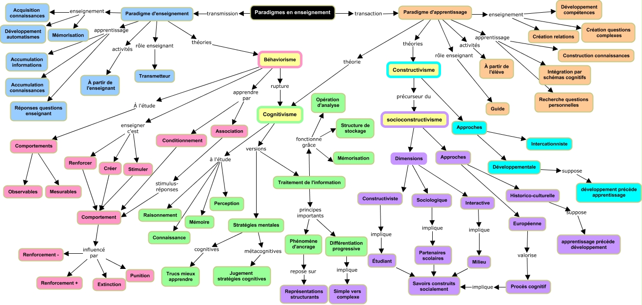 Cette carte de concepts créée avec IHMC CmapTools traite de: Sans titre, Paradigme d'apprentissage rôle enseignant Guide, Approches Développementale, Comportement influencé par Renforcement -, Paradigme d'enseignement enseignement Développement automatismes, Traitement de l'information fonctionne grâce Mémorisation, Béhaviorisme À l'étude Comportements, Cognitivisme à l'étude Mémoire, Cognitivisme versions Stratégies mentales, socioconstructivisme Approches, Milieu Savoirs construits socialement, Paradigme d'apprentissage théorie Cognitivisme, Paradigme d'enseignement apprentissage Réponses questions enseignant, Conditionnement Comportement, Paradigme d'apprentissage enseignement Création questions complexes, socioconstructivisme Dimensions, Comportements Observables, Développementale suppose développement précède apprentissage, Béhaviorisme enseigner c'est Renforcer, Comportement influencé par Renforcement +, Béhaviorisme enseigner c'est Créer
