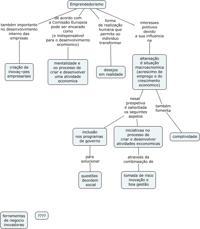 Esse mapa conceitual, produzido no IHMC CmapTools, tem a informação relacionada a: empreendedorismo_5, altareação d situação macroecnomica (acrescimo de emprego e do crescimento economico) nesat prespetiva é salientada os seguintes aspetos inclusão nos programas de governo, Emprendedorismo forma de realização humana que permite ao individuo transformar desejos em realidade, altareação d situação macroecnomica (acrescimo de emprego e do crescimento economico) também fomenta comptividade, Emprendedorismo de acordo com a Comissão Europeia pode ser encarado como (e indispensabvel para o desenvolvimento ecomionico) mentalidade e oo processo de criar e desenvolver uma atividade economica, inclusão nos programas de governo para solucionar questões deordem social, altareação d situação macroecnomica (acrescimo de emprego e do crescimento economico) nesat prespetiva é salientada os seguintes aspetos iniciativaa no processo de criar e desenvolver atividades exconomicas, iniciativaa no processo de criar e desenvolver atividades exconomicas atraveés da combinaação de tomada de risco inovação e boa gestão, Emprendedorismo também importante no desenvolvimento interno das empresas criação de inovaç~pes empresariais, Emprendedorismo interesses politivos devido a sua influencia na altareação d situação macroecnomica (acrescimo de emprego e do crescimento economico)