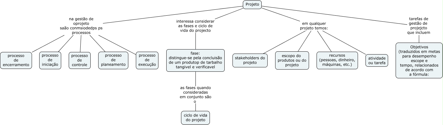 Esse mapa conceitual, produzido no IHMC CmapTools, tem a informação relacionada a: projeto_2, Projeto na gestão de oprojeto saão conmsiodedps ps processos processo de planeamento, fase: distingue-se pela concluisão de um produtop de tarbalho tangivel e verificavel as fases quando consideradas em conjunto são o ciclo de vida do projeto, Projeto tarefas de gestão de projejcto que incluem Objetivos (traduzidos em metas para desempenho escope e tempo, relacionados de acordo com a fórmula:, Projeto em qualquer projeto temos: escopo do produtos ou do projeto, Projeto na gestão de oprojeto saão conmsiodedps ps processos processo de iniciação, Projeto na gestão de oprojeto saão conmsiodedps ps processos processo de encerramento, Projeto em qualquer projeto temos: atividade ou tarefa, Projeto em qualquer projeto temos: stakeholders do projeto, Projeto em qualquer projeto temos: recursos (pessoas, dinheiro, máquinas, etc.), Projeto na gestão de oprojeto saão conmsiodedps ps processos processo de controle, Projeto na gestão de oprojeto saão conmsiodedps ps processos processo de execução, Projeto interessa considerar as fases e ciclo de vida do projecto fase: distingue-se pela concluisão de um produtop de tarbalho tangivel e verificavel