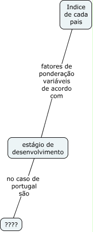 Esse mapa conceitual, produzido no IHMC CmapTools, tem a informação relacionada a: competitividade_2, Indice de cada pais fatores de ponderação variáveis de acordo com estágio de desenvolvimento, estágio de desenvolvimento no caso de portugal são ????