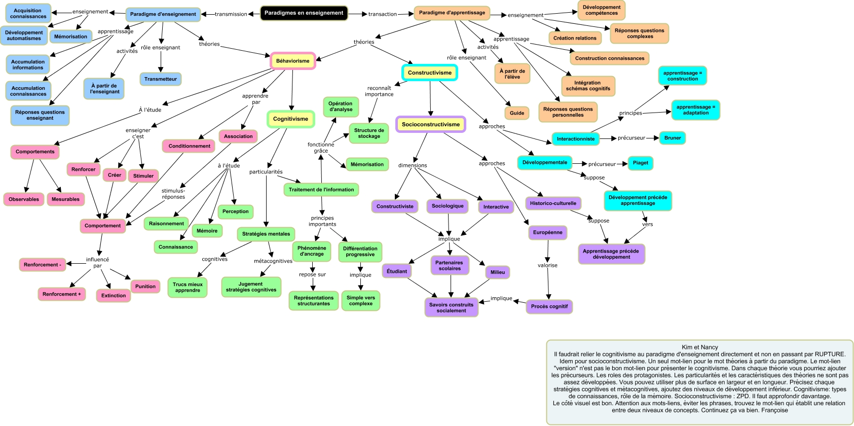 Cette carte de concepts créée avec IHMC CmapTools traite de: Pelletier_Beaudoin_FB.cmap, Sociologique implique Partenaires scolaires, Étudiant Savoirs construits socialement, Socioconstructivisme dimensions Sociologique, Développementale précurseur Piaget, Constructivisme reconnaît importance Structure de stockage, Paradigme d'apprentissage apprentissage Intégration schémas cognitifs, Cognitivisme à l'étude Perception, Paradigme d'apprentissage enseignement Développement compétences, Cognitivisme à l'étude Raisonnement, Cognitivisme particularités Traitement de l'information, Stratégies mentales cognitives Trucs mieux apprendre, Traitement de l'information principes importants Phénomène d'ancrage, Européenne valorise Procès cognitif, Constructiviste implique Milieu, Paradigme d'apprentissage théories Béhaviorisme, Procès cognitif implique Savoirs construits socialement, Renforcer Comportement, Béhaviorisme enseigner c'est Créer, Développement précède apprentissage vers Apprentissage précède développement, Socioconstructivisme approches Européenne