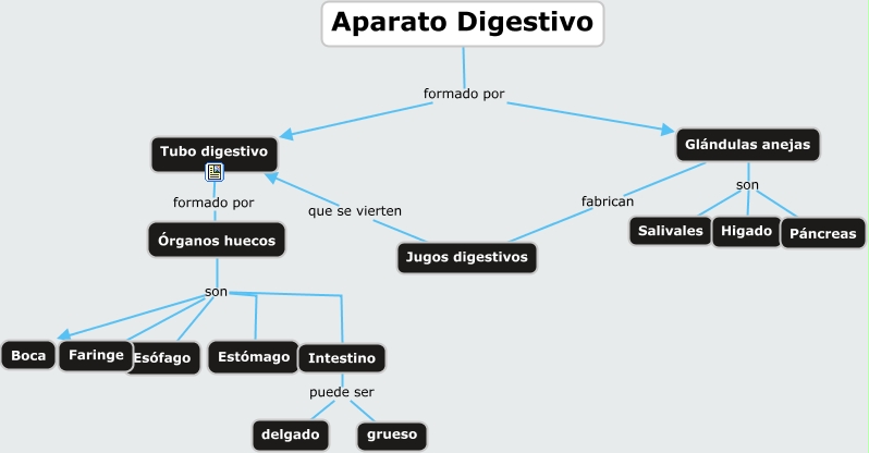 Este Cmap, tiene información relacionada con: Sin Título 2, Glándulas anejas son Salivales, Glándulas anejas fabrican Jugos digestivos, Órganos huecos son Esófago, Glándulas anejas son Páncreas, Órganos huecos son Boca, Órganos huecos son Faringe, Órganos huecos son Estómago, Glándulas anejas son Higado, Intestino puede ser delgado, Tubo digestivo formado por Órganos huecos, Intestino puede ser grueso, Jugos digestivos que se vierten Tubo digestivo, Aparato Digestivo formado por Glándulas anejas, Aparato Digestivo formado por Tubo digestivo, Órganos huecos son Intestino