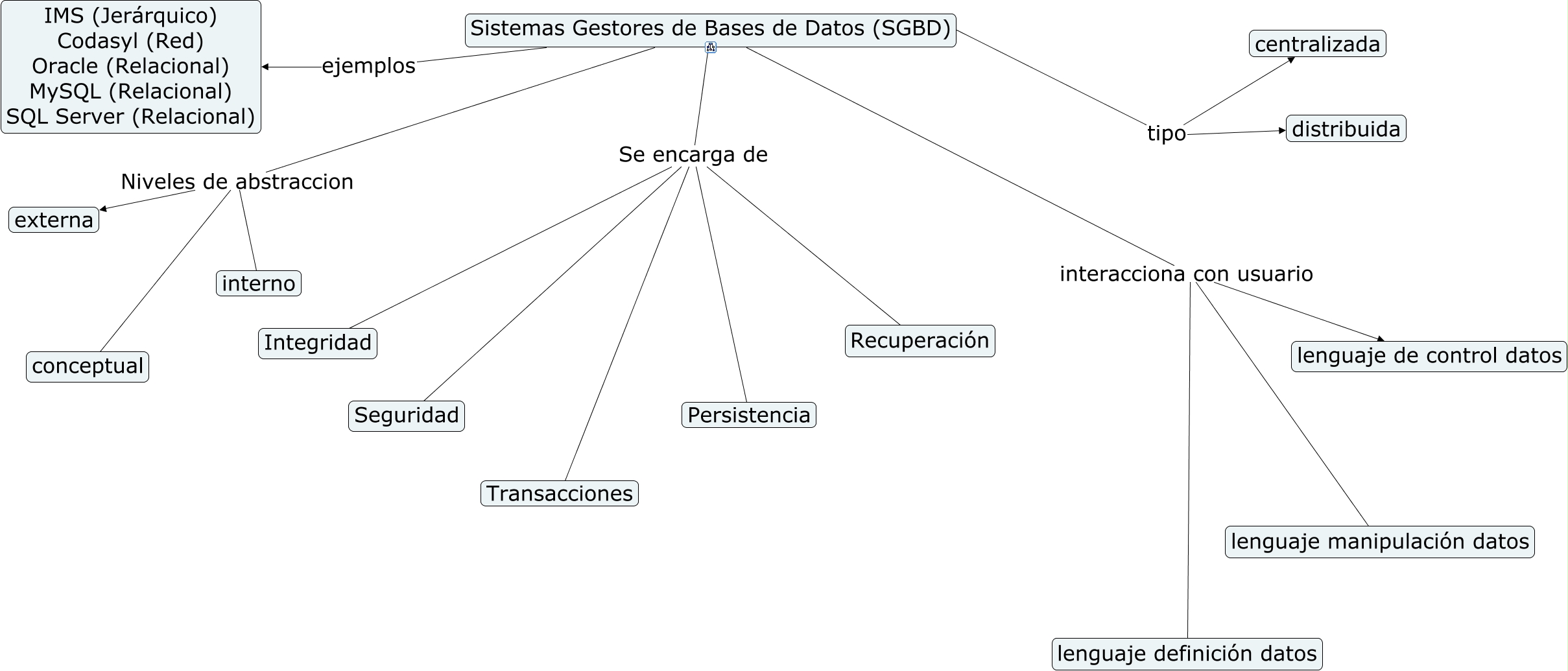Este Cmap, tiene información relacionada con: sistemasgestoresbasesdedatos, Sistemas Gestores de Bases de Datos (SGBD) tipo distribuida, Sistemas Gestores de Bases de Datos (SGBD) Se encarga de Recuperación, Sistemas Gestores de Bases de Datos (SGBD) Se encarga de Seguridad, Sistemas Gestores de Bases de Datos (SGBD) Niveles de abstraccion interno, Sistemas Gestores de Bases de Datos (SGBD) Se encarga de Integridad, Sistemas Gestores de Bases de Datos (SGBD) ejemplos IMS (Jerárquico) Codasyl (Red) Oracle (Relacional) MySQL (Relacional) SQL Server (Relacional), Sistemas Gestores de Bases de Datos (SGBD) interacciona con usuario lenguaje de control datos, Sistemas Gestores de Bases de Datos (SGBD) tipo centralizada, Sistemas Gestores de Bases de Datos (SGBD) interacciona con usuario lenguaje definición datos, Sistemas Gestores de Bases de Datos (SGBD) interacciona con usuario lenguaje manipulación datos, Sistemas Gestores de Bases de Datos (SGBD) Niveles de abstraccion externa, Sistemas Gestores de Bases de Datos (SGBD) Se encarga de Persistencia, Sistemas Gestores de Bases de Datos (SGBD) Niveles de abstraccion conceptual, Sistemas Gestores de Bases de Datos (SGBD) Se encarga de Transacciones