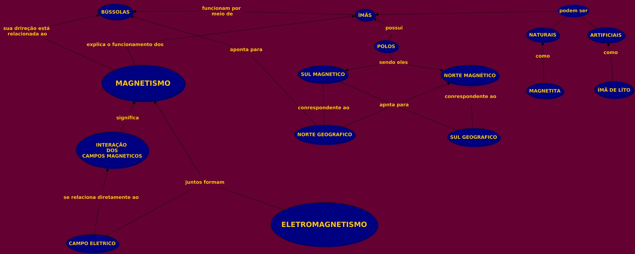 Esse mapa conceitual, produzido no IHMC CmapTools, tem a informação relacionada a: MAPA ISA E YUSUF, POLOS sendo eles SUL MAGNETICO, ARTIFICIAIS podem ser ÍMÃS, CAMPO ELETRICO se relaciona diretamente ao INTERAÇÃO DOS CAMPOS MAGNETICOS, NORTE GEOGRAFICO apnta para NORTE MAGNÉTICO, MAGNETITA como NATURAIS, POLOS possui ÍMÃS, SUL MAGNETICO apnta para NORTE MAGNÉTICO, NORTE MAGNÉTICO conrespondente ao SUL GEOGRAFICO, ELETROMAGNETISMO juntos formam CAMPO ELETRICO, ÍMÃS funcionam por meio de BÚSSOLAS, NORTE GEOGRAFICO aponta para BÚSSOLAS, ELETROMAGNETISMO juntos formam MAGNETISMO, MAGNETISMO sua drireção está relacionada ao BÚSSOLAS, SUL GEOGRAFICO apnta para NORTE MAGNÉTICO, NATURAIS podem ser ÍMÃS, INTERAÇÃO DOS CAMPOS MAGNETICOS significa MAGNETISMO, SUL MAGNETICO conrespondente ao NORTE GEOGRAFICO, MAGNETISMO explica o funcionamento dos ÍMÃS, POLOS sendo eles NORTE MAGNÉTICO, ÍMÃ DE LÍTO como ARTIFICIAIS