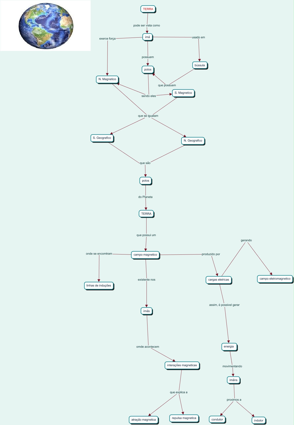 Esse mapa conceitual, produzido no IHMC CmapTools, tem a informação relacionada a: kevyn ana elizabeth, N. Magnetico que se igualam S. Geografico, ímã exerce força N. Magnetico, interações magneticas que explica a repulsa magnetica, energia movimentando imãns, cargas eletricas assim, é possivel gerar energia, S. Magnetico que se igualam S. Geografico, polos do Planeta TERRA, N. Magnetico que se igualam N. Geografico, polos sendo eles S. Magnetico, polos sendo eles N. Magnetico, N. Geografico que são polos, campo magnetico existente nos ímãs, campo magnetico produzido por cargas eletricas, campo magnetico onde se encomtram linhas de induções, S. Geografico que são polos, ímã usado em bússula, TERRA pode ser vista como ímã, S. Magnetico que se igualam N. Geografico, TERRA que possui um campo magnetico, ímã possuem polos
