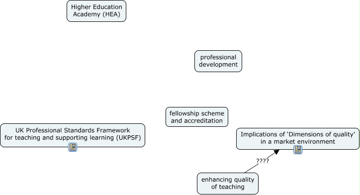This Concept Map, created with IHMC CmapTools, has information related to: UKPSF related, enhancing quality of teaching ???? Implications of ‘Dimensions of quality’ in a market environment