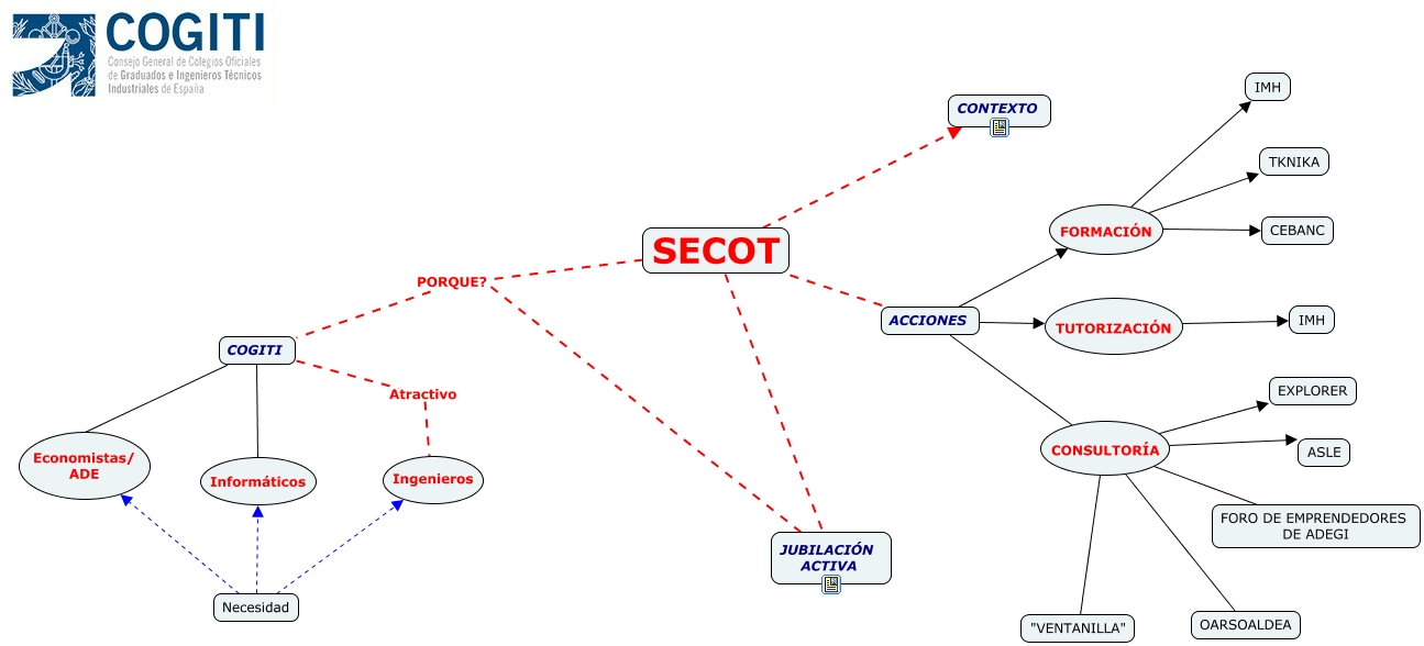 Este Cmap, tiene información relacionada con: COGITI, ACCIONES CONSULTORÍA, JUBILACIÓN ACTIVA PORQUE? COGITI, FORMACIÓN IMH, FORMACIÓN TKNIKA, COGITI Informáticos, CONSULTORÍA "VENTANILLA", CONSULTORÍA EXPLORER, CONSULTORÍA FORO DE EMPRENDEDORES DE ADEGI, FORMACIÓN CEBANC, TUTORIZACIÓN IMH, Necesidad Economistas/ ADE, SECOT CONTEXTO, COGITI Economistas/ ADE, CONSULTORÍA ASLE, ACCIONES TUTORIZACIÓN, Necesidad Informáticos, Necesidad Ingenieros, SECOT PORQUE? COGITI, ACCIONES FORMACIÓN, COGITI Atractivo Ingenieros