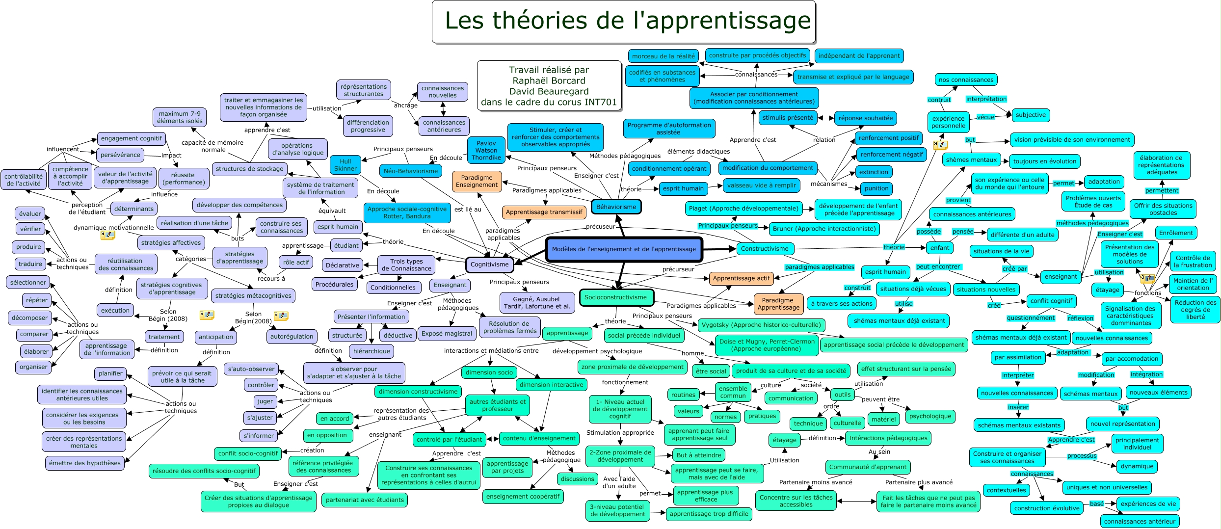 Cette carte de concepts créée avec IHMC CmapTools traite de: Cmap 2.6 début de la finalisation (diminuer espace pour image à transmettre), Constructivisme Principaux penseurs Piaget (Approche développementale), stimulis présenté réponse souhaitée, traiter et emmagasiner les nouvelles informations de façon organisée utilisation différenciation progressive, outils ordre technique, réutilisation des connaissances actions ou techniques traduire, prévoir ce qui serait utile à la tâche actions ou techniques créer des représentations mentales, Vygotsky (Approche historico-culturelle) apprentissage social précède le développement, enfant pensée différente d'un adulte, modification du comportement relation réponse souhaitée, shémas mentaux déjà existant adaptation par accomodation, 2-Zone proximale de développement permet apprentissage plus efficace, outils ordre culturelle, étayage fonctions Enrôlement, compétence à accomplir l'activité influencent engagement cognitif, expérience personnelle contruit nos connaissances, Socioconstructivisme Principaux penseurs Doise et Mugny, Perret-Clermon (Approche européenne), étayage fonctions Réduction des degrés de liberté, persévérance impact réussite (performance), Modèles de l'enseignement et de l'apprentissage Constructivisme, étudiant apprentissage rôle actif