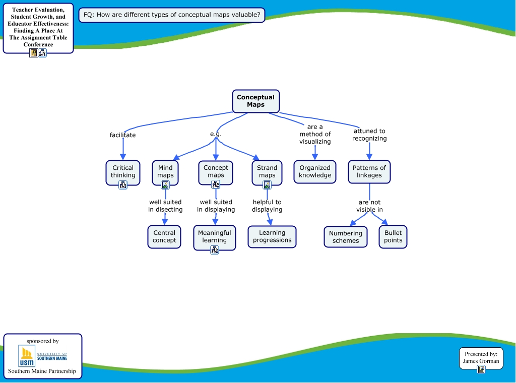 This Concept Map, created with IHMC CmapTools, has information related to: Conceptual Maps, Conceptual Maps e.g. Concept maps, Conceptual Maps are a method of visualizing Organized knowledge, Conceptual Maps e.g. Mind maps, Conceptual Maps attuned to recognizing Patterns of linkages, Patterns of linkages are not visible in Bullet points, Conceptual Maps facilitate Critical thinking, Conceptual Maps e.g. Strand maps, Strand maps helpful to displaying Learning progressions, Patterns of linkages are not visible in Numbering schemes, Concept maps well suited in displaying Meaningful learning, Mind maps well suited in disecting Central concept