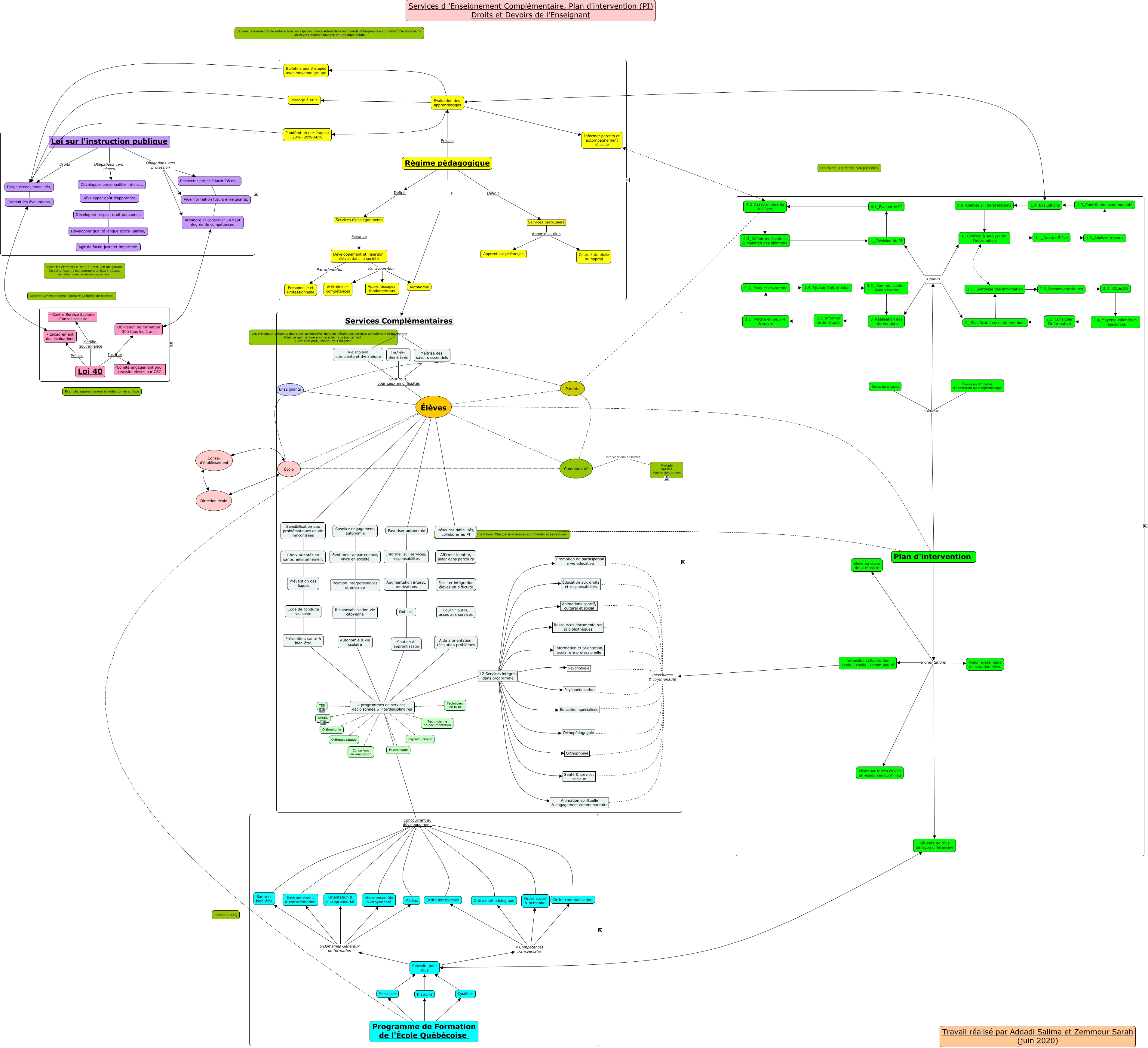 Cette carte de concepts créée avec IHMC CmapTools traite de: Zemmour_Addadi_FB.cmap, Programme de Formation de l'École Québécoise Socialiser, Relation interpersonelles et entraide Sentiment appartenance, vivre en société, 3_Réalisation des interventions 3.1_Informer les impliqués, Programme de Formation de l'École Québécoise Qualifier, Réussite pour tous 5 Domaines Généraux de formation Santé et bien-être, Plan d'intervention 5 orientations Vision systémique de situation élève, Intensifier collaboration École_Famille_ Communauté Ressources & communauté Animation spirituelle & engagement communautaire, 1.4_Évaluations Évaluation des apprentissages, Santé et bien-être Concourrent au développement Environnement & consommation, Affirmer identité, aider dans parcours Résoudre difficultés, collaborer au PI, Intensifier collaboration École_Famille_ Communauté Ressources & communauté Animations sportif, culturel et social, Plan d'intervention S'adresse Élèves handicapés, Intensifier collaboration École_Famille_ Communauté Ressources & communauté Psychologie, Informer sur services, responsabilités Favoriser autonomie, 4.2_Associer parents & élèves 4.3_Définir modications & maintien des éléments, Myriade SAFIMA Maison des jeunes interventions possibles Communauté, Développement et insertion élèves dans la société Par orientation Personnelle et Professionnelle, Psycoéducateur 4 programmes de services décloisonnés & interdisciplinaires, Développement et insertion élèves dans la société Par acquisition Attitudes et compétences, 2.3_ Objectifs 2.4_Moyens; calendrier; ressources