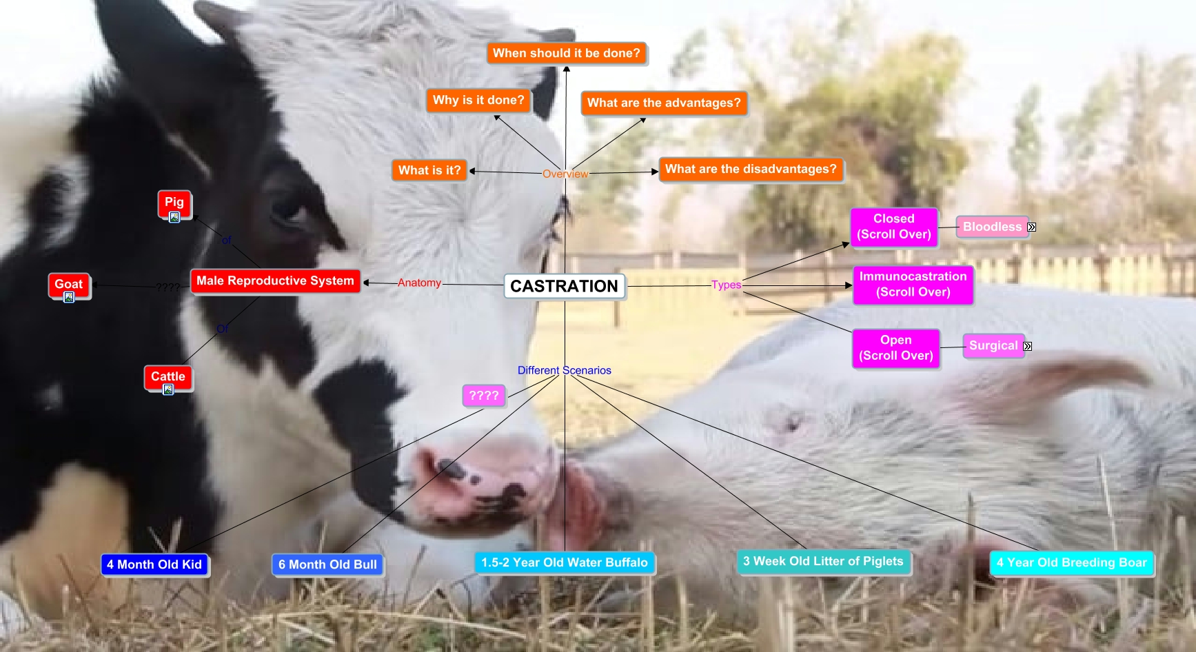This Concept Map, created with IHMC CmapTools, has information related to: Castration Final, CASTRATION Types Open (Scroll Over), Elastic Banding Example 3 Callicrate Bander, Elastic Banding Example 2 EZE Bander, CASTRATION Overview When should it be done?, Closed (Scroll Over) Bloodless Short Scrotum Method, Male Reproductive System of Pig, CASTRATION Different Scenarios 4 Month Old Kid, Elastic Banding Example 1 Elastrator, CASTRATION Types Immunocastration (Scroll Over), CASTRATION Anatomy Male Reproductive System, CASTRATION Overview Why is it done?, Open (Scroll Over) Surgical Henderson Method, Male Reproductive System ???? Goat, CASTRATION Types Closed (Scroll Over), Closed (Scroll Over) Bloodless Elastic Banding, CASTRATION Different Scenarios 4 Year Old Breeding Boar, CASTRATION Different Scenarios 6 Month Old Bull, Emasculatome Example Burdizzo, CASTRATION Overview What are the advantages?, CASTRATION Overview What is it?