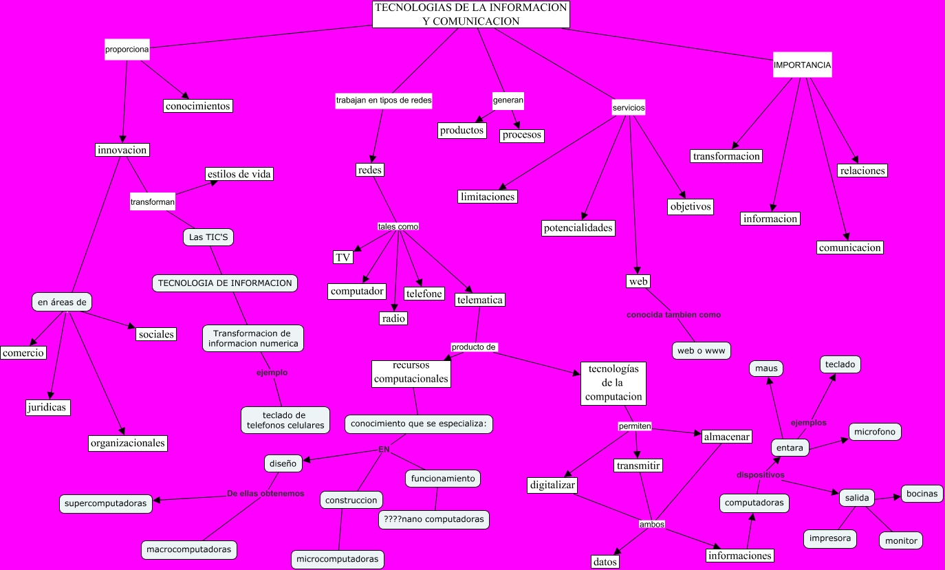 Este Cmap, tiene información relacionada con: tecnologias de la informacion y comunicacion, tecnologías de la computacion permiten digitalizar, almacenar ambos datos, TECNOLOGIAS DE LA INFORMACION Y COMUNICACION proporciona innovacion, almacenar ambos informaciones, conocimiento que se especializa: EN construccion, TECNOLOGIAS DE LA INFORMACION Y COMUNICACION IMPORTANCIA comunicacion, digitalizar ambos datos, redes tales como telematica, innovacion sociales, salida ???? bocinas, TECNOLOGIAS DE LA INFORMACION Y COMUNICACION trabajan en tipos de redes redes, innovacion transforman Las TIC'S, TECNOLOGIAS DE LA INFORMACION Y COMUNICACION generan procesos, TECNOLOGIAS DE LA INFORMACION Y COMUNICACION generan productos, redes tales como TV, entara ???? maus, diseño De ellas obtenemos macrocomputadoras, telematica producto de tecnologías de la computacion, TECNOLOGIA DE INFORMACION ???? Transformacion de informacion numerica, entara ???? microfono