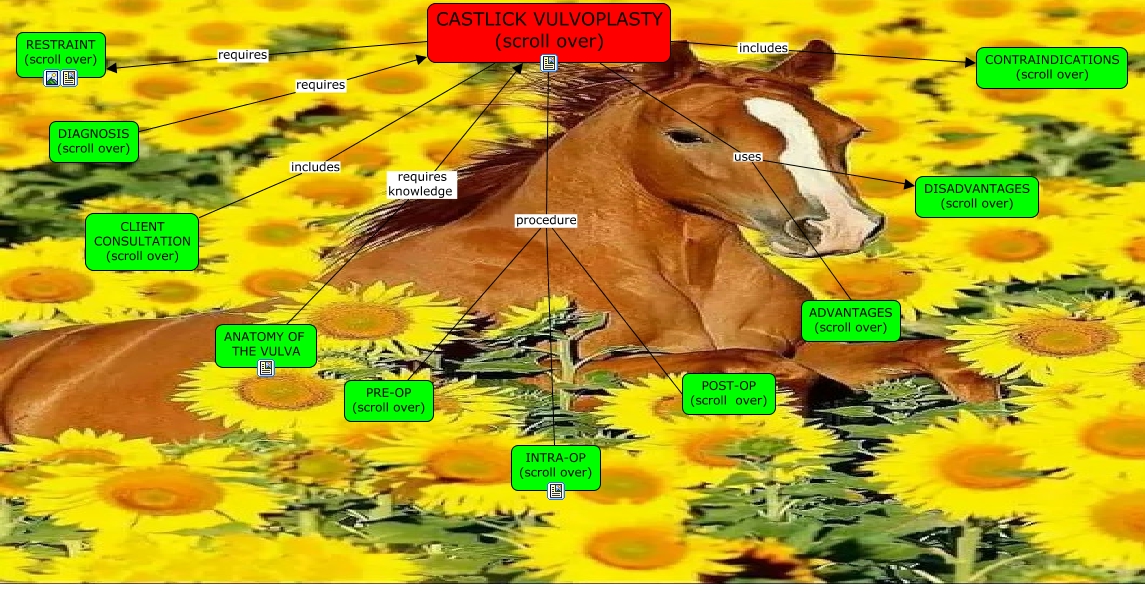 This Concept Map, created with IHMC CmapTools, has information related to: Caslick vuvlopasty, CASTLICK VULVOPLASTY (scroll over) procedure POST-OP (scroll over), DIAGNOSIS (scroll over) requires CASTLICK VULVOPLASTY (scroll over), CASTLICK VULVOPLASTY (scroll over) requires RESTRAINT (scroll over), CASTLICK VULVOPLASTY (scroll over) uses DISADVANTAGES (scroll over), ANATOMY OF THE VULVA requires knowledge CASTLICK VULVOPLASTY (scroll over), CASTLICK VULVOPLASTY (scroll over) includes CONTRAINDICATIONS (scroll over), CASTLICK VULVOPLASTY (scroll over) procedure INTRA-OP (scroll over), CASTLICK VULVOPLASTY (scroll over) procedure PRE-OP (scroll over), CASTLICK VULVOPLASTY (scroll over) includes CLIENT CONSULTATION (scroll over), CASTLICK VULVOPLASTY (scroll over) uses ADVANTAGES (scroll over)