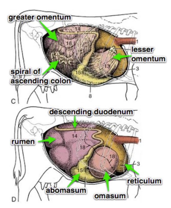 This Concept Map, created with IHMC CmapTools, has information related to: GROUP E LAB 7 (ABOMASAL SURGERY), DISPLACED ABOMASUM how can we prevent it? PREVENTION, DISPLACED ABOMASUM how? RISK FACTORS (mouse over), DISPLACED ABOMASUM is related to BLOAT, BLOAT involves RISK FACTORS, RISK FACTORS involves PASTURE (scroll over), BLOAT involves TYPES OF TREATMENT (scroll over), ABOMASAL SURGERY before surgery,review ANATOMY, RISK FACTORS involves ANIMAL FACTORS (scroll over), ANATOMY involves LEFT SIDE, DISPLACED ABOMASUM how? CAUSES (mouse over), DISPLACED ABOMASUM what is it? DEFINITION (mouse over), BLOAT WHAT IS BLOAT? (scroll over), DISPLACED ABOMASUM what happens? SYMPTOMS (mouse over), ANATOMY involves RIGHT SIDE, BLOAT involves RESTRAINT (scroll over), TYPES OF BLOAT includes SECONDARY/ GASEOUS BLOAT (scroll over), DISPLACED ABOMASUM how do we fix it? TREATMENT, ABOMASAL SURGERY requires knowledge on CASE 1 (scroll over), BLOAT includes TYPES OF BLOAT, ABOMASAL SURGERY requires EQUIPMENTS