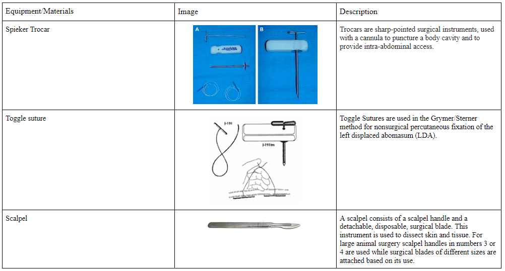 1.PNG 2.PNG 3.PNG 4.PNG 5.PNG 6.PNG Abdominal Organis Visible from Right Side.png Abdominal Organs Visible from Left Side.png Anatomy of RUminant Stomach.png Article - Diagnosis and Treatment of Hardware Disease.url Article - Ruminal Acidosis in Feedlot - From Aetiology to Prevention.url Case 1 Background.jpg Case 2 Background.jpg Cow Musculature.jpg Displacement of Abomasum.url Distal Paravertebral Nerve Block.png Drug.PNG Epidural Block.png Equipment table 1.PNG Equipment table 2.PNG Equipment table 3.PNG Equipment table 4.PNG Equipment table 5.PNG exploration of rumen.url Fill Score.png Ford interlocking- rope restraint.gif Foreign body - reticulum.png General Anesthesia - Confusion Rate Infusion.png General Anesthesia - Constant Rate Infusion.png Hardware Disease.url Hardware Disease in Buffalo.url Interactive Musculature.url Inverted L block.url Inverted L-Block.png Inverted L block video.url LDA Comparison of Techniques.png Left Laparotomy Instruments.PNG Main CMAP Background.jpg Method.url Paralumbar fossa.PNG Paravertebral line block.url paravertebral proximal and distal nerve blocks.url Pros and Cons of LDA Techniques.png Proximal Paravertebral Nerve Block.png Pyloropexy.jpeg Right Flank Omentopexy.url Right Flank Omentopexy.jpeg Rolling Method.url Rolling Technique.url Rumenotomy.png Rumenotomy Instruments.PNG Rumenotomy Video.url Ruminal Blood Supply.png Standing epidural.png Ultrasonographic_findings_in_cows_with_left_displa.pdf Untitled.cmap Visualization of LDA.url