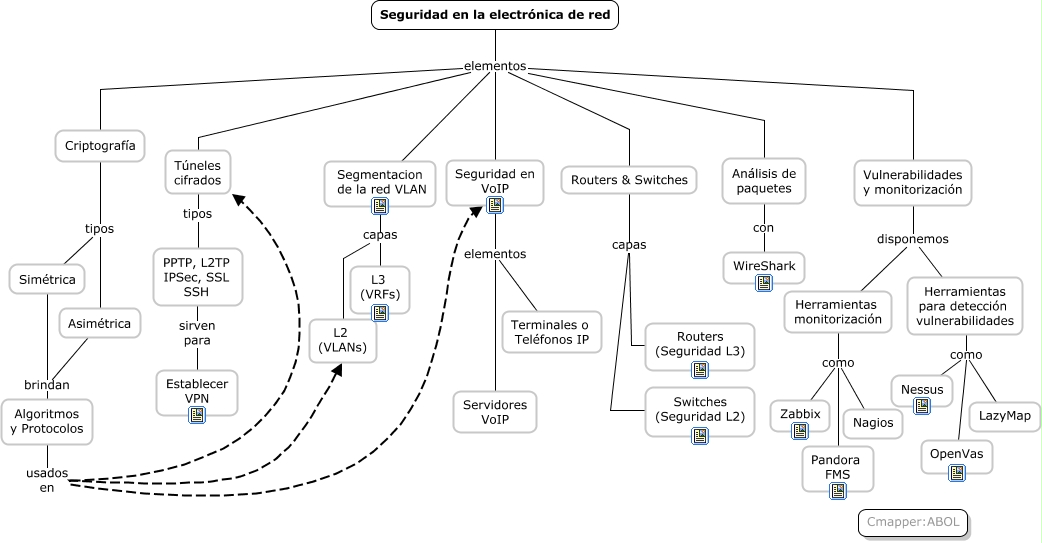Este Cmap, tiene información relacionada con: ud2_ciberseguridad_sistemas_IMPRIMIR.cmap, Algoritmos y Protocolos usados en Seguridad en VoIP, Asimétrica brindan Algoritmos y Protocolos, Vulnerabilidades y monitorización disponemos Herramientas para detección vulnerabilidades, Análisis de paquetes con WireShark, Vulnerabilidades y monitorización disponemos Herramientas monitorización, Herramientas para detección vulnerabilidades como LazyMap, Algoritmos y Protocolos usados en L2 (VLANs), Túneles cifrados tipos PPTP, L2TP IPSec, SSL SSH, Criptografía elementos Seguridad en la electrónica de red, Herramientas para detección vulnerabilidades como OpenVas, Seguridad en VoIP elementos Servidores VoIP, Criptografía tipos Simétrica, Simétrica brindan Algoritmos y Protocolos, Criptografía elementos Routers & Switches, Routers & Switches capas Routers (Seguridad L3), Criptografía elementos Seguridad en VoIP, Herramientas monitorización como Zabbix, Criptografía tipos Asimétrica, Herramientas monitorización como Pandora FMS, Routers & Switches capas Switches (Seguridad L2)