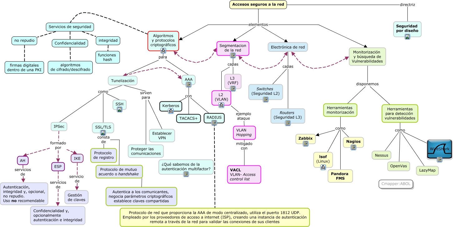 Este Cmap, tiene información relacionada con: ud2_ciberseguridad_sistemas_locales_redesNew.cmap, Electrónica de red capas Routers (Seguridad L3), Herramientas para detección vulnerabilidades como LazyMap, Algoritmos y Protocolos criptográficos para Tunelización, IKE servicio de gestión de claves, Accesos seguros a la red directriz SEGURIDAD POR DISEÑO, Herramientas para detección vulnerabilidades como Nessus, Tunelización sirven para Proteger las comunicaciones, VLAN Hopping mitigado con VACL VLAN- Access control list., Electrónica de red capas Switches (Seguridad L2), Monitorización y búsqueda de Vulnerabilidades disponemos Herramientas para detección vulnerabilidades, Tunelización sirven para Establecer VPN, Tunelización como SSL/TLS, Accesos seguros a la red elementos Monitorización y búsqueda de Vulnerabilidades, Herramientas para detección vulnerabilidades como OpenVas, AAA con TACACS+, Accesos seguros a la red elementos Segmentacion de la red, Accesos seguros a la red elementos Algoritmos y Protocolos criptográficos, Tunelización como IPSec, Protocolo de mutuo acuerdo o handshake Autentica a los comunicantes, negocia parámetros criptográficos establece claves compartidas., AAA con kerberos