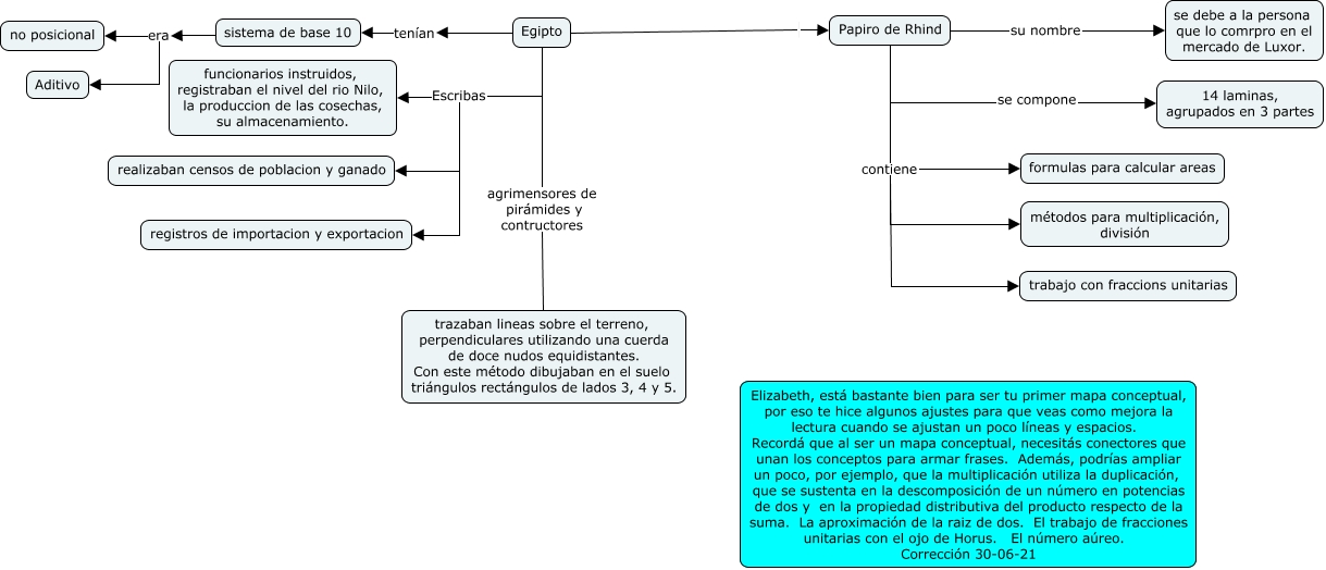 This Concept Map, created with IHMC CmapTools, has information related to: Calderon_Egipto, Egipto tenían sistema de base 10, Papiro de Rhind su nombre se debe a la persona que lo comrpro en el mercado de Luxor., Egipto Escribas registros de importacion y exportacion, Egipto agrimensores de pirámides y contructores trazaban lineas sobre el terreno, perpendiculares utilizando una cuerda de doce nudos equidistantes. Con este método dibujaban en el suelo triángulos rectángulos de lados 3, 4 y 5., Papiro de Rhind contiene métodos para multiplicación, división, Egipto Papiro de Rhind, Papiro de Rhind se compone 14 laminas, agrupados en 3 partes, sistema de base 10 era no posicional, sistema de base 10 era Aditivo, Papiro de Rhind contiene formulas para calcular areas, Egipto Escribas realizaban censos de poblacion y ganado, Egipto Escribas funcionarios instruidos, registraban el nivel del rio Nilo, la produccion de las cosechas, su almacenamiento., Papiro de Rhind contiene trabajo con fraccions unitarias