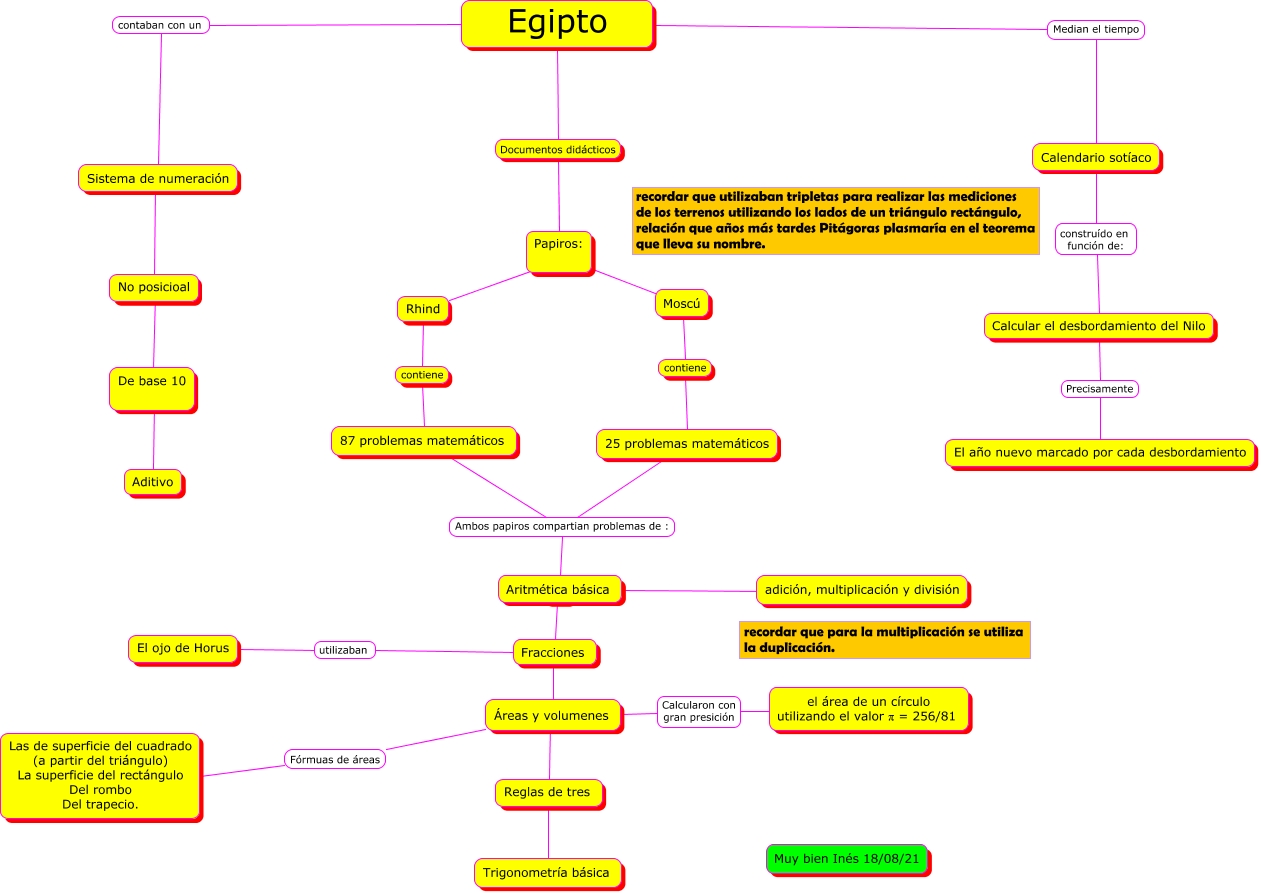 This Concept Map, created with IHMC CmapTools, has information related to: Chocobar, Aritmética básica Ambos papiros compartian problemas de : 87 problemas matemáticos, Calcular el desbordamiento del Nilo construído en función de: Calendario sotíaco, Papiros: ???? Moscú, Papiros: ???? Rhind, Fracciones ???? Áreas y volumenes, Áreas y volumenes ???? Reglas de tres, Papiros: Documentos didácticos Egipto, 25 problemas matemáticos contiene Moscú, El año nuevo marcado por cada desbordamiento Precisamente Calcular el desbordamiento del Nilo, adición, multiplicación y división ???? Aritmética básica, Áreas y volumenes Fórmuas de áreas Las de superficie del cuadrado (a partir del triángulo) La superficie del rectángulo Del rombo Del trapecio., 87 problemas matemáticos contiene Rhind, Reglas de tres ???? Trigonometría básica, 25 problemas matemáticos Ambos papiros compartian problemas de : 87 problemas matemáticos, Egipto contaban con un Sistema de numeración, Calendario sotíaco Median el tiempo Egipto, Sistema de numeración ???? No posicioal, Áreas y volumenes Calcularon con gran presición el área de un círculo utilizando el valor π = 256/81, No posicioal ???? De base 10, Aritmética básica ???? Fracciones