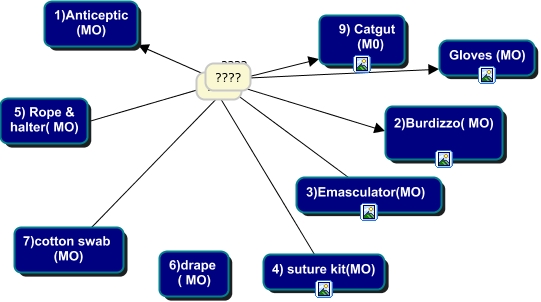 This Concept Map, created with IHMC CmapTools, has information related to: TOOLS, ???? ????, ???? Gloves (MO), ???? 2)Burdizzo( MO), ???? 5) Rope & halter( MO), ???? ????, ???? 9) Catgut (M0), ???? 1)Anticeptic (MO), ???? 4) suture kit(MO), ???? 3)Emasculator(MO), 7)cotton swab (MO) ???? ????, ???? ????