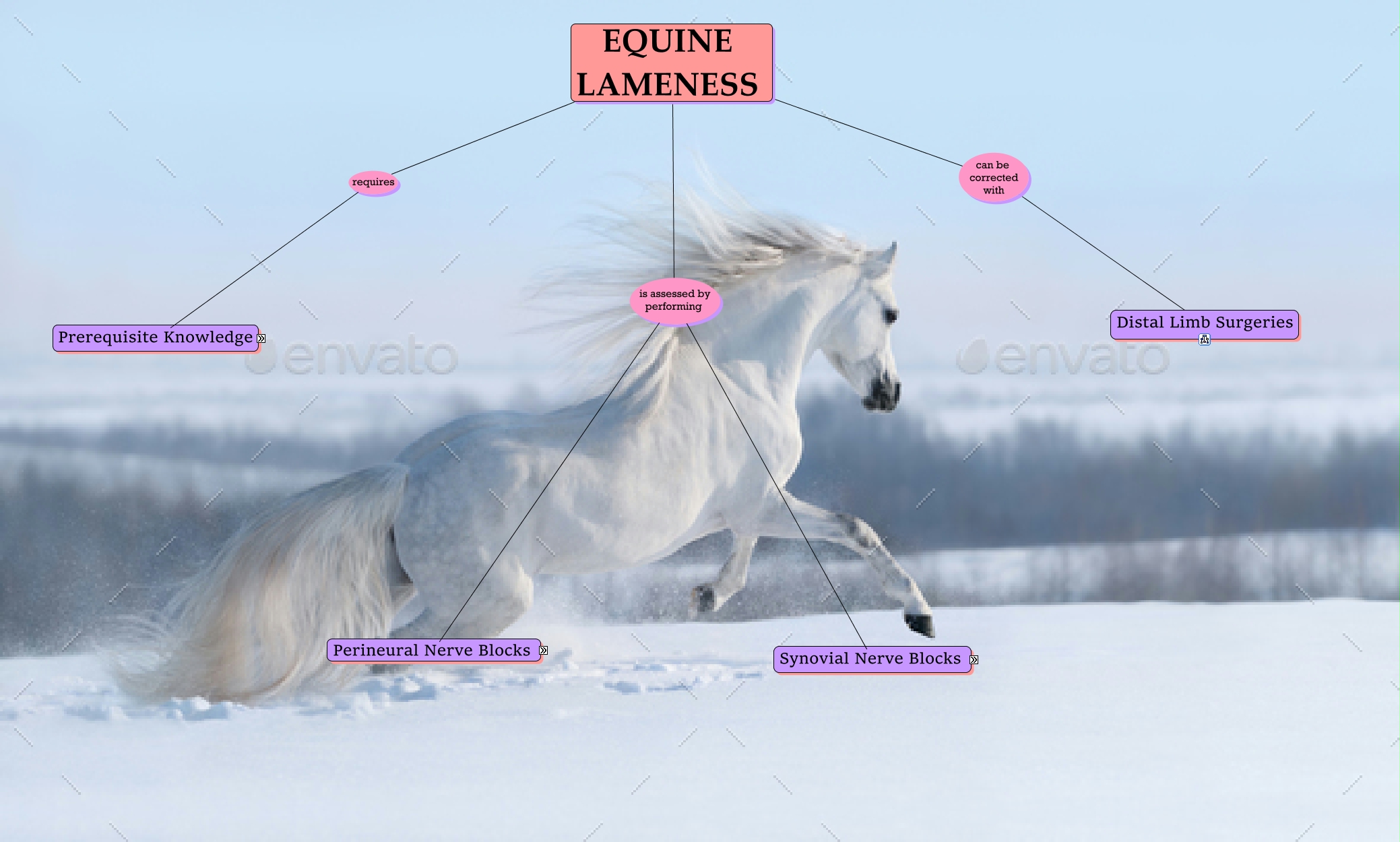 This Concept Map, created with IHMC CmapTools, has information related to: Group 2 LAS LAB 5 - Equine Nerve Blocks and Distal Limb surgery, Perineural Nerve Blocks (MO) has Pre-operation Considerations, Synovial Structure Blocks has Post- Operation Considerations, Perineural Nerve Blocks (MO) includes -PDNB -ASNB -L4PNB -L6PNB -H4PNB -H6PNB, EQUINE LAMENESS can be corrected with Distal Limb Surgeries, Synovial Structure Blocks has Pre-operation Considerations, Perineural Nerve Blocks (MO) has Post-Operation Considerations, Prerequisite Knowledge of Anatomy of the forelimb, hindlimb & hoof, EQUINE LAMENESS is assessed by performing Perineural Nerve Blocks (MO), EQUINE LAMENESS requires Prerequisite Knowledge, Prerequisite Knowledge of Lameness, EQUINE LAMENESS is assessed by performing Synovial Structure Blocks, Synovial Structure Blocks includes -DIP -PIP -MCP/MTP -CMC -MC -RBC TMT DIT TC -NB Bursa -Tendon Sheath (DFTS)