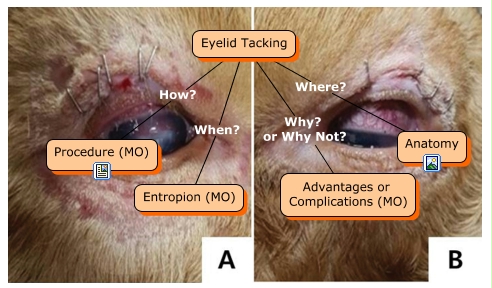 This Concept Map, created with IHMC CmapTools, has information related to: Eyelid Tacking, Eyelid Tacking When? Entropion (MO), Eyelid Tacking How? Procedure (MO), Eyelid Tacking Where? Anatomy, Eyelid Tacking Why? or Why Not? Advantages or Complications (MO)