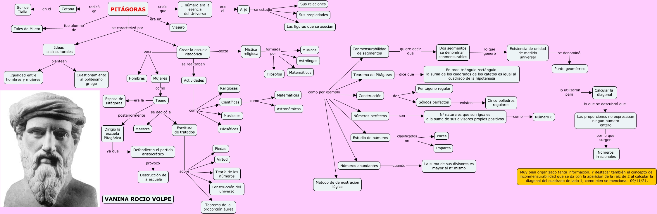 This Concept Map, created with IHMC CmapTools, has information related to: 4-PITÁGORAS, Teano era la Esposa de Pitágoras, Construcción de Sólidos perfectos, Defendieron el partido aristocrático provocó Destrucción de la escuela, Matemáticas como por ejemplo Números abundantes, Mística religiosa formada por Astrólogos, Matemáticas como por ejemplo Teorema de Pitágoras, PITÁGORAS creía que El número era la esencia del Universo, Escritura de tratados sobre Piedad, PITÁGORAS fue alumno de Tales de Mileto, El número era la esencia del Universo era el Arjé, Existencia de unidad de medida universal se denominó Punto geométrico, Actividades como Religiosas, Crear la escuela Pitagórica secta Mística religiosa, Mística religiosa formada por Músicos, Sólidos perfectos existen Cinco poliedros regulares, Arjé se estudio Sus propiedades, Mística religiosa formada por Matemáticos, Números perfectos son N° naturales que son iguales a la suma de sus divisores propios positivos, Teorema de Pitágoras dice que En todo triángulo rectángulo la suma de los cuadrados de los catetos es igual al cuadrado de la hipotenusa, Números abundantes cuando La suma de sus divisores es mayor al n° mismo