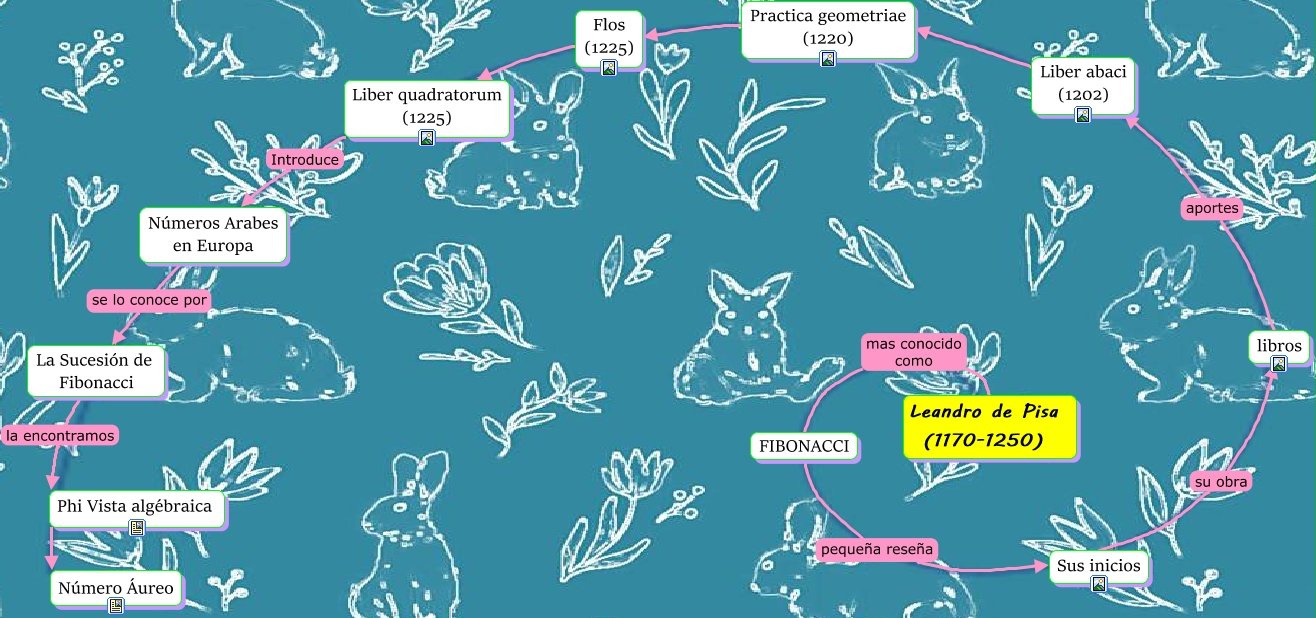 Este Cmap, tiene información relacionada con: Fibonacci, FIBONACCI pequeña reseña Sus inicios, Liber quadratorum (1225) Introduce Números Arabes en Europa, Leandro de Pisa (1170-1250) mas conocido como FIBONACCI, La Sucesión de Fibonacci la encontramos Phi Vista algébraica, Phi Vista algébraica Número Áureo, Sus inicios su obra libros, Practica geometriae (1220) Flos (1225), Flos (1225) Liber quadratorum (1225), libros aportes Liber abaci (1202), Liber abaci (1202) Practica geometriae (1220), Números Arabes en Europa se lo conoce por La Sucesión de Fibonacci