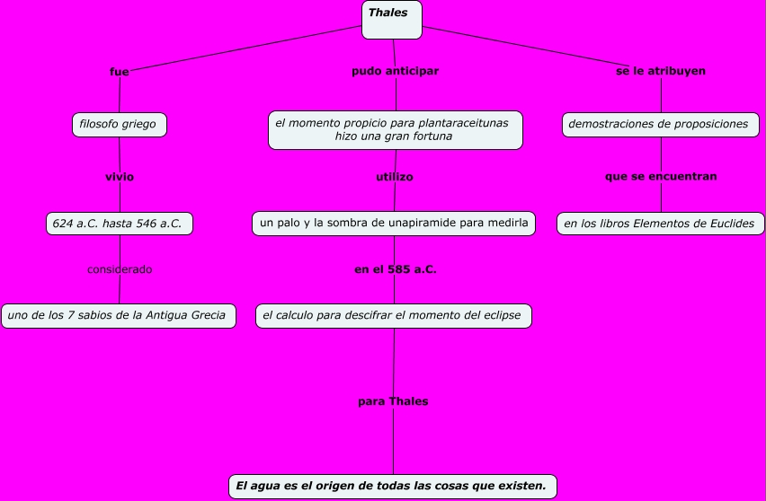 This Concept Map, created with IHMC CmapTools, has information related to: Thales de Mileto