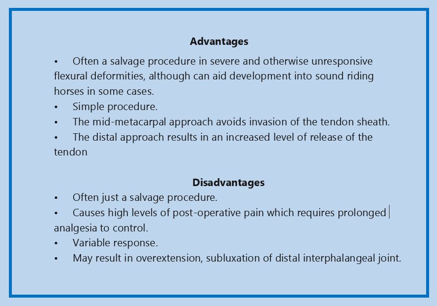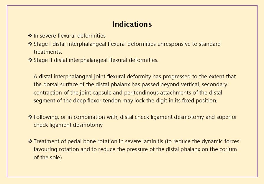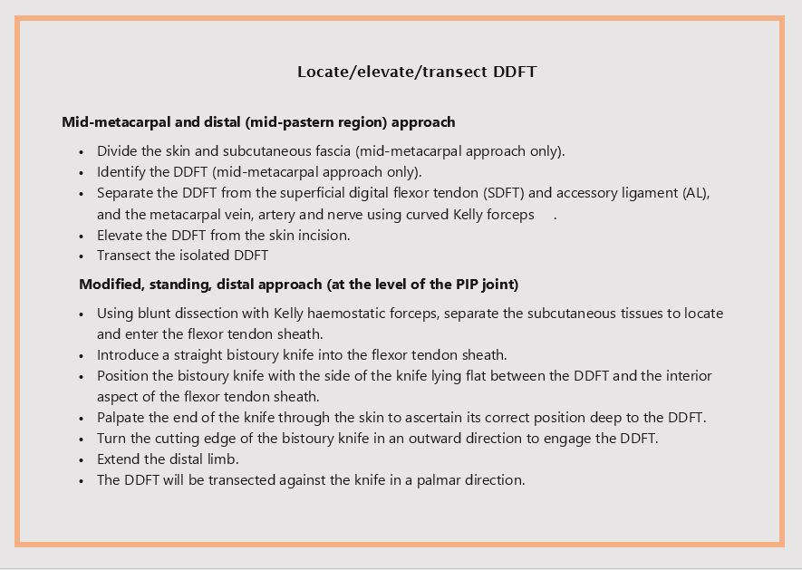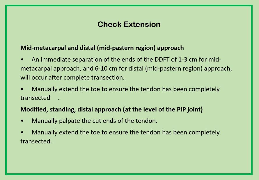 Advantages & Disadvantages.JPG Complications & Prognosis - DDFT Tenotomy.JPG DDFT Tenotomy - Indications.JPG DDFT Tenotomy - Picture.JPG Process 1.JPG Process 2 - Check Extension.JPG Wound Closure.JPG