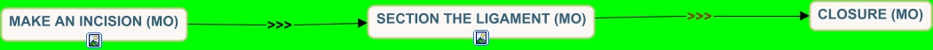 This Concept Map, created with IHMC CmapTools, has information related to: Medial Patellar Ligament Desmotomy Procedure, SECTION THE LIGAMENT (MO) >>> CLOSURE (MO), MAKE AN INCISION (MO) >>> SECTION THE LIGAMENT (MO)