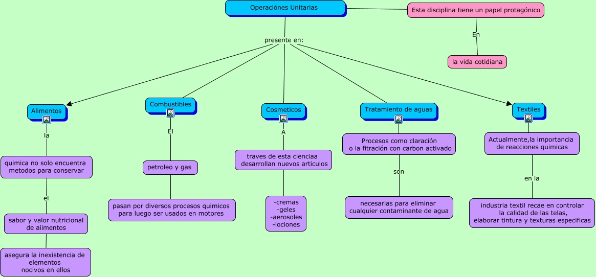 Este Cmap, tiene información relacionada con: quimica, traves de esta cienciaa desarrollan nuevos articulos ???? -cremas -geles -aerosoles -lociones, petroleo y gas ???? pasan por diversos procesos quimicos para luego ser usados en motores, Cosmeticos A traves de esta cienciaa desarrollan nuevos articulos, Procesos como claración o la fitración con carbon activado son necesarias para eliminar cualquier contaminante de agua, Textiles ???? Actualmente,la importancia de reacciones quimicas, Alimentos la quimica no solo encuentra metodos para conservar, Operaciónes Unitarias presente en: Tratamiento de aguas, Operaciónes Unitarias presente en: Cosmeticos, Operaciónes Unitarias ???? Esta disciplina tiene un papel protagónico, quimica no solo encuentra metodos para conservar el sabor y valor nutricional de aiimentos, Operaciónes Unitarias presente en: Combustibles, Operaciónes Unitarias presente en: Textiles, sabor y valor nutricional de aiimentos ???? asegura la inexistencia de elementos nocivos en ellos, Esta disciplina tiene un papel protagónico En la vida cotidiana, Tratamiento de aguas ???? Procesos como claración o la fitración con carbon activado, Combustibles El petroleo y gas, Operaciónes Unitarias presente en: Alimentos, Actualmente,la importancia de reacciones quimicas en la industria textil recae en controlar la calidad de las telas, elaborar tintura y texturas especificas