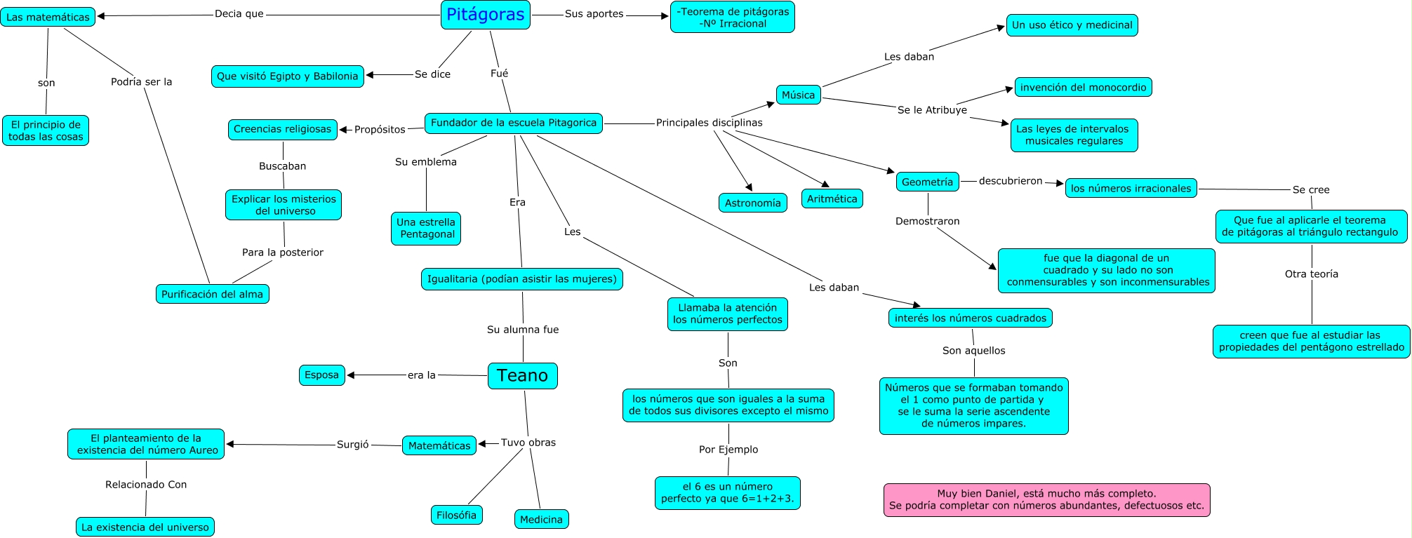 This Concept Map, created with IHMC CmapTools, has information related to: Fernández_mapa_conceptual_Pitágoras, Que fue al aplicarle el teorema de pitágoras al triángulo rectangulo Otra teoría creen que fue al estudiar las propiedades del pentágono estrellado, Pitágoras Decia que Las matemáticas, Pitágoras Fué Fundador de la escuela Pitagorica, Teano Tuvo obras Matemáticas, Fundador de la escuela Pitagorica Principales disciplinas Geometría, Fundador de la escuela Pitagorica Principales disciplinas Aritmética, los números irracionales Se cree Que fue al aplicarle el teorema de pitágoras al triángulo rectangulo, Teano era la Esposa, Fundador de la escuela Pitagorica Principales disciplinas Astronomía, Las matemáticas Podría ser la Purificación del alma, Música Les daban Un uso ético y medicinal, Pitágoras Sus aportes -Teorema de pitágoras -Nº Irracional, Fundador de la escuela Pitagorica Principales disciplinas Música, Pitágoras Se dice Que visitó Egipto y Babilonia, Fundador de la escuela Pitagorica Era Igualitaria (podían asistir las mujeres), Música Se le Atribuye invención del monocordio, Fundador de la escuela Pitagorica Les daban interés los números cuadrados, interés los números cuadrados Son aquellos Números que se formaban tomando el 1 como punto de partida y se le suma la serie ascendente de números impares., Explicar los misterios del universo Para la posterior Purificación del alma, Geometría descubrieron los números irracionales