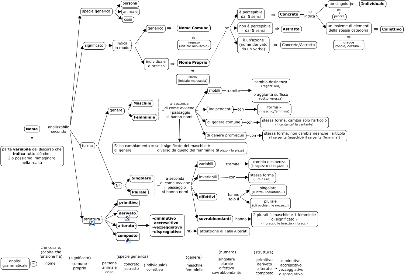 This Concept Map, created with IHMC CmapTools, has information related to: 02_nome, Nome Proprio se è percepibile dai 5 sensi, variabili tramite cambio desinenza (il ragazz-o / i ragazzi-i), un insieme di elementi della stessa categoria ⇒ Collettivo, specie generica . animale, struttura - alterato, Nome Comune se non è percepibile dai 5 sensi, mobili tramite cambio desinenza (ragazz-o/a) o aggiunta suffisso (dottor-e/essa), <math xmlns="http://www.w3.org/1998/Math/MathML"> <mtext> |