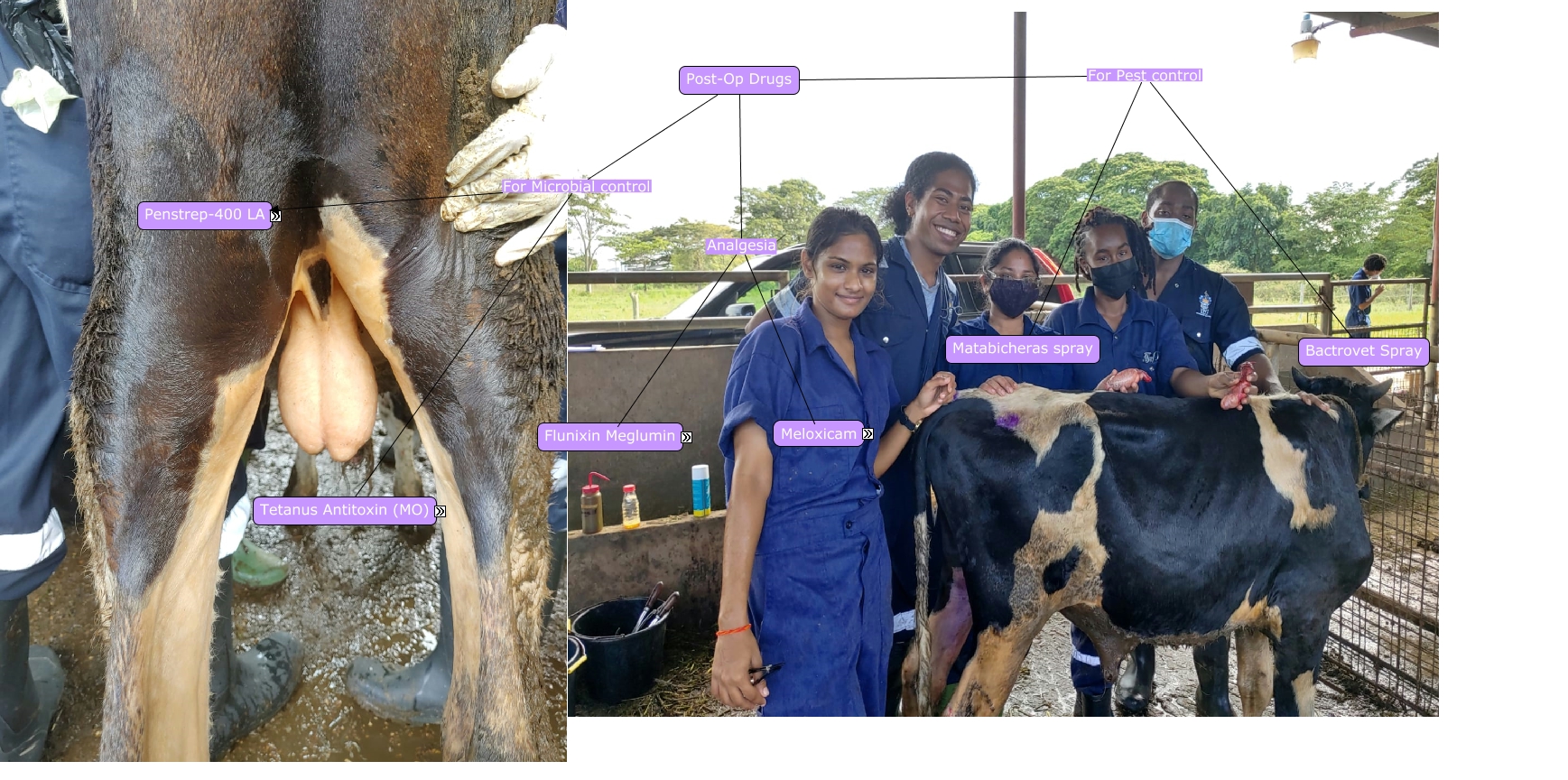 This Concept Map, created with IHMC CmapTools, has information related to: Post op. drugs 1, Post-Op Drugs Analgesia Meloxicam (MO), Meloxicam (MO) Dose 1 mg/kg, Flunixin Meglumin (MO) Concentration 50 mg/mL, Tetanus Antitoxin Dose Kid:250 to 300 IU, Flunixin Meglumin (MO) Dose 1.1 mg/kg, Tetanus Antitoxin Dose Adult: 500 IU, Post-Op Drugs For Pest control Bactrovet Spray, Meloxicam (MO) Route Oral, Penstrep-400 LA (MO) Dose 20,000 IU/kg, Post-Op Drugs For Pest control Matabicheras spray, Post-Op Drugs Analgesia Flunixin Meglumin (MO), Meloxicam (MO) Concentration 15 mg/mL, Post-Op Drugs For Microbial control Tetanus Antitoxin (MO), Post-Op Drugs For Microbial control Penstrep-400 LA (MO), Flunixin Meglumin (MO) Route IV (MO), Penstrep-400 LA (MO) Concentration 200,000 IU/mL, Penstrep-400 LA (MO) Route IM (MO)