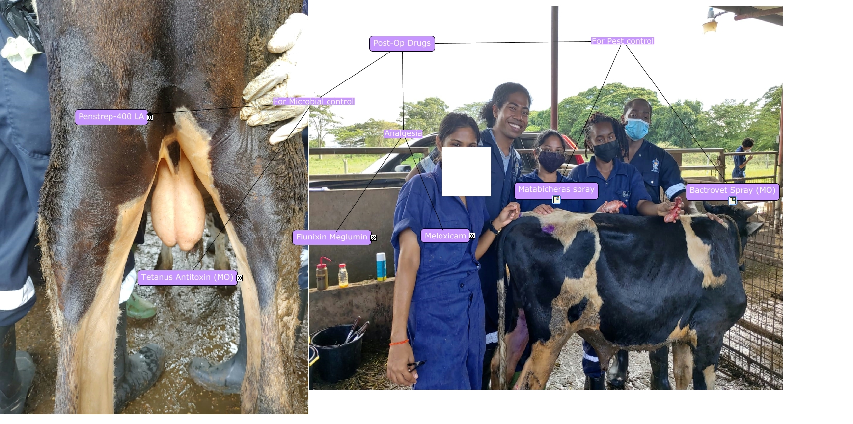 This Concept Map, created with IHMC CmapTools, has information related to: Post op. drugs 1, Post-Op Drugs Analgesia Meloxicam (MO), Meloxicam (MO) Dose 1 mg/kg, Flunixin Meglumin (MO) Concentration 50 mg/mL, Tetanus Antitoxin Dose Kid:250 to 300 IU, Flunixin Meglumin (MO) Dose 1.1 mg/kg, Tetanus Antitoxin Dose Adult: 500 IU, Post-Op Drugs For Pest control Bactrovet Spray (MO), Meloxicam (MO) Route Oral, Penstrep-400 LA (MO) Dose 20,000 IU/kg, Post-Op Drugs For Pest control Matabicheras spray, Post-Op Drugs Analgesia Flunixin Meglumin (MO), Meloxicam (MO) Concentration 15 mg/mL, Post-Op Drugs For Microbial control Tetanus Antitoxin (MO), Post-Op Drugs For Microbial control Penstrep-400 LA (MO), Flunixin Meglumin (MO) Route IV (MO), Penstrep-400 LA (MO) Concentration 200,000 IU/mL, Penstrep-400 LA (MO) Route IM (MO)