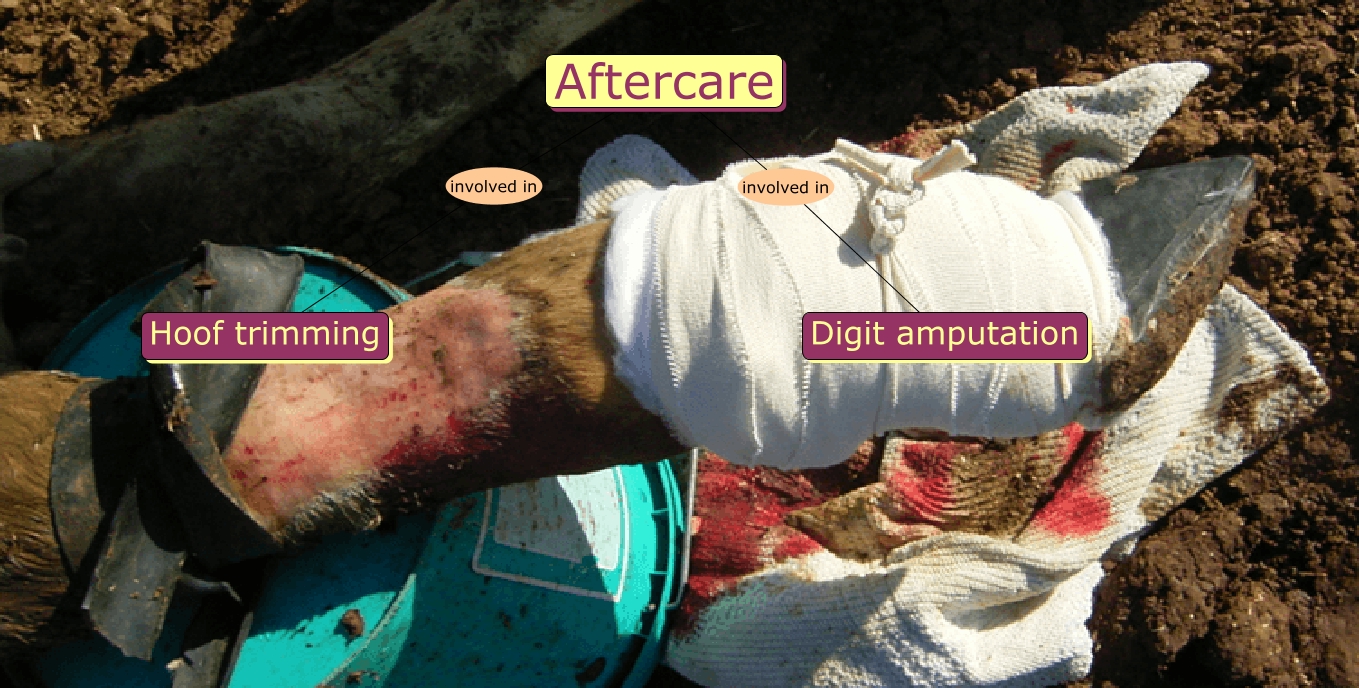 This Concept Map, created with IHMC CmapTools, has information related to: Post Operative- Aftercare, Aftercare involved in Hoof trimming, Aftercare involved in Digit amputation