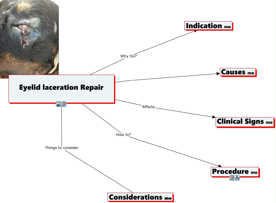This Concept Map, created with IHMC CmapTools, has information related to: Eyelid Laceration Repair CMAP, Eyelid laceration Repair Causes mo, Eyelid laceration Repair Why Do? Indication mo, Eyelid laceration Repair Affects Clinical Signs mo, Eyelid laceration Repair How to? Procedure mo, Eyelid laceration Repair Things to consider Considerations mo