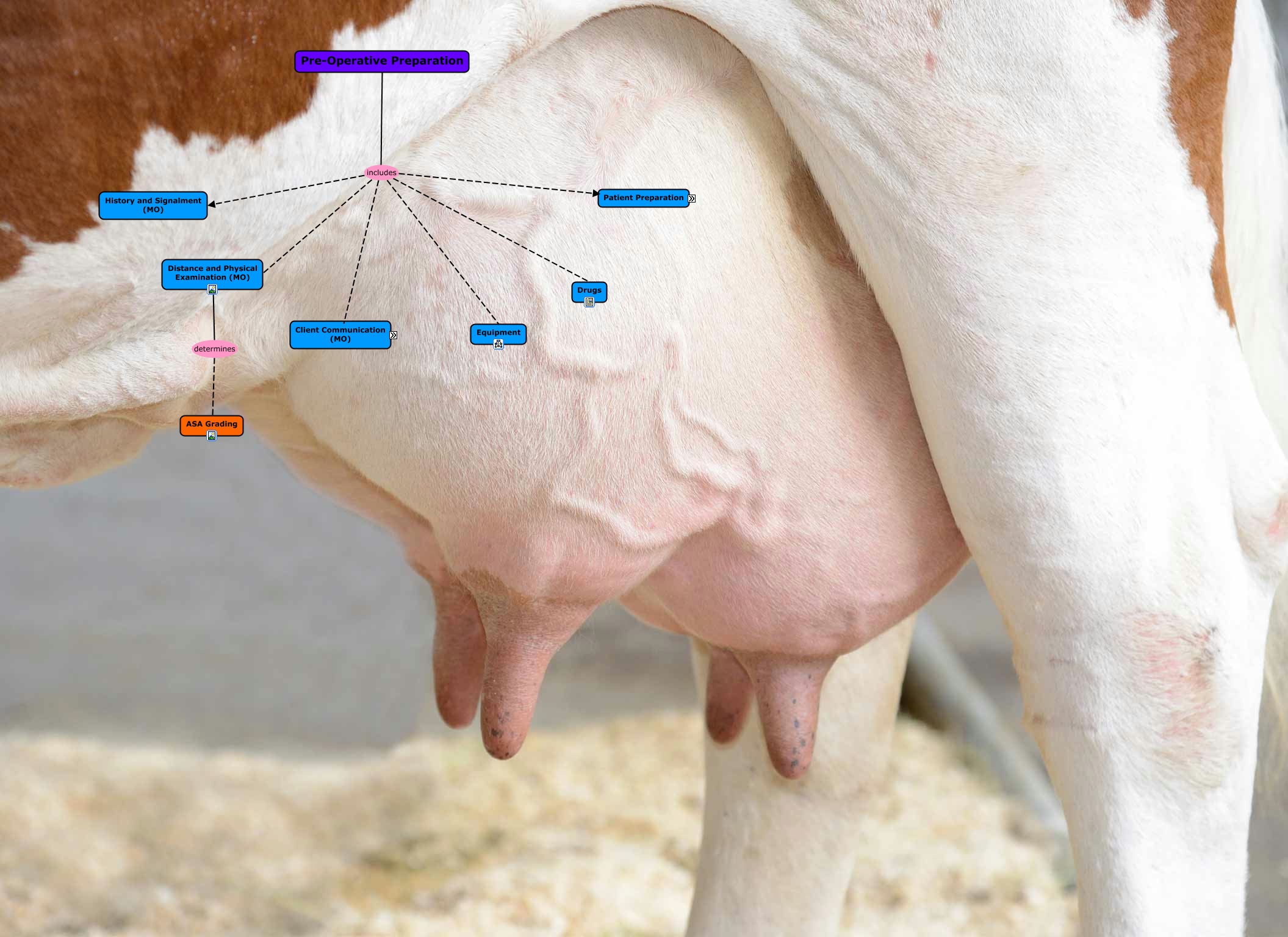 This Concept Map, created with IHMC CmapTools, has information related to: Pre-Operative Preparation, Patient Preparation involves Relative Blocks (MO), Client Communication informs the client Consent Form, Pre-Operative Preparation includes Equipment, Pre-Operative Preparation includes Client Communication, Pre-Operative Preparation includes History and Signalment (MO), Pre-Operative Preparation includes Patient Preparation, Distance and Physical Examination (MO) determines ASA Grading, Pre-Operative Preparation includes Distance and Physical Examination (MO), Pre-Operative Preparation includes Drugs, Patient Preparation involves Patient (MO), Client Communication informs the client Cost (MO), Patient Preparation involves Method of restraint (MO)