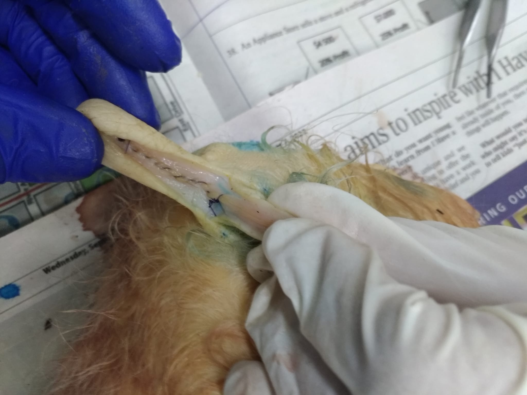 Deep thickness teat laceration repair.png Muscle layer closure.jpg muscle layer pre-closure.jpg Skin closed.jpg submucosa closed.jpg Submucosa pre-closure.jpg Teat Laceration Repair.cmap
