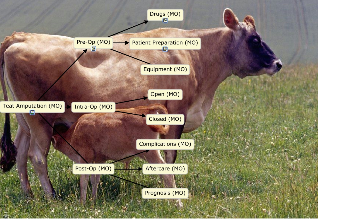 This Concept Map, created with IHMC CmapTools, has information related to: Teat Amputation 1, Post-Op (MO) Prognosis (MO), Teat Amputation (MO) Post-Op (MO), Teat Amputation (MO) Intra-Op (MO), Pre-Op (MO) Drugs (MO), Pre-Op (MO) Patient Preparation (MO), Post-Op (MO) Complications (MO), Teat Amputation (MO) Pre-Op (MO), Intra-Op (MO) Open (MO), Pre-Op (MO) Equipment (MO), Post-Op (MO) Aftercare (MO), Intra-Op (MO) Closed (MO)