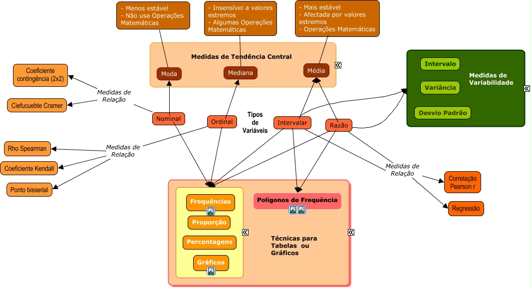 Esse mapa conceitual, produzido no IHMC CmapTools, tem a informação relacionada a: Estatísticas - Geral, Mediana ???? - Insensível a valores estremos - Algumas Operações Matemáticas, Nominal ???? Moda, Intervalar ???? ????, Nominal ???? ????, Moda ???? - Menos estável - Não usa Operações Matemáticas, Ordinal Medidas de Relação Ponto bisserial, Média ???? - Mais estável - Afectada por valores estremos - Operações Matemáticas, Razão ???? Polígonos de Frequência, Intervalar Medidas de Relação Correlação Pearson r, Ordinal ???? Mediana, Razão ???? Média, Razão Medidas de Relação Regressão, Ordinal Medidas de Relação Rho Spearman, Nominal Medidas de Relação Ciefucuebte Cramer, Nominal Medidas de Relação Coeficiente contingência (2x2), Intervalar ? Média, Razão ???? ????, Razão Medidas de Relação Correlação Pearson r, Intervalar Medidas de Relação Regressão, Intervalar ???? ????