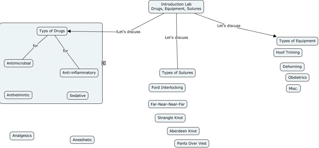 This Concept Map, created with IHMC CmapTools, has information related to: Lab 1 TEST RUN, Typs of Drugs for Anti-inflammatory, Introduction Lab Drugs, Equipment, Sutures lLet's discuss Typs of Drugs, Introduction Lab Drugs, Equipment, Sutures Let's discuss Types of Equipment, Introduction Lab Drugs, Equipment, Sutures Let's discuss Types of Sutures, Typs of Drugs for Antimicrobial