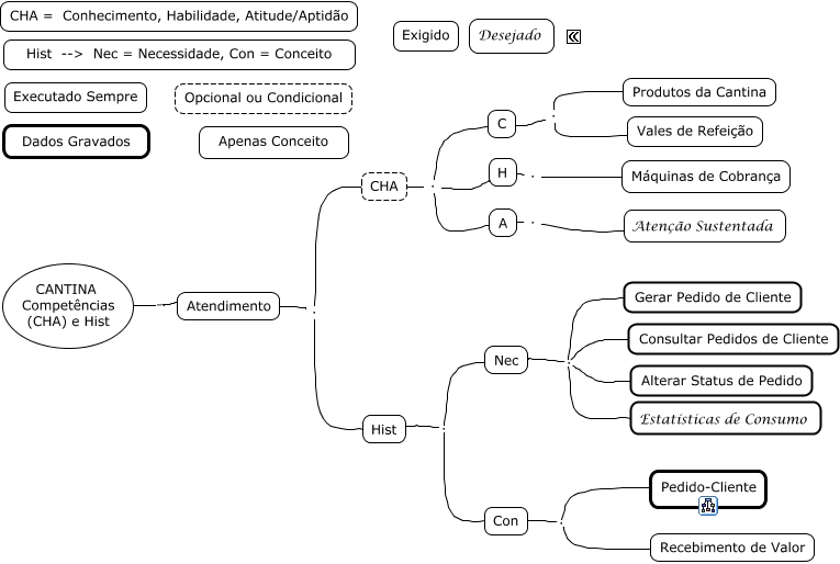 Esse mapa conceitual, produzido no IHMC CmapTools, tem a informação relacionada a: 4 Soluções e Iniciativas - Atend, C . Produtos da Cantina, A . Atenção Sustentada, Hist . Nec, Con . Recebimento de Valor, C . Vales de Refeição, Hist . Con, Nec . Alterar Status de Pedido, Atendimento . Hist, Nec . Estatísticas de Consumo, Con . Pedido-Cliente, Nec . Consultar Pedidos de Cliente, CHA . A, H . Máquinas de Cobrança, Atendimento . CHA, CHA . H, Nec . Gerar Pedido de Cliente, CANTINA Competências (CHA) e Hist . Atendimento, CHA . C