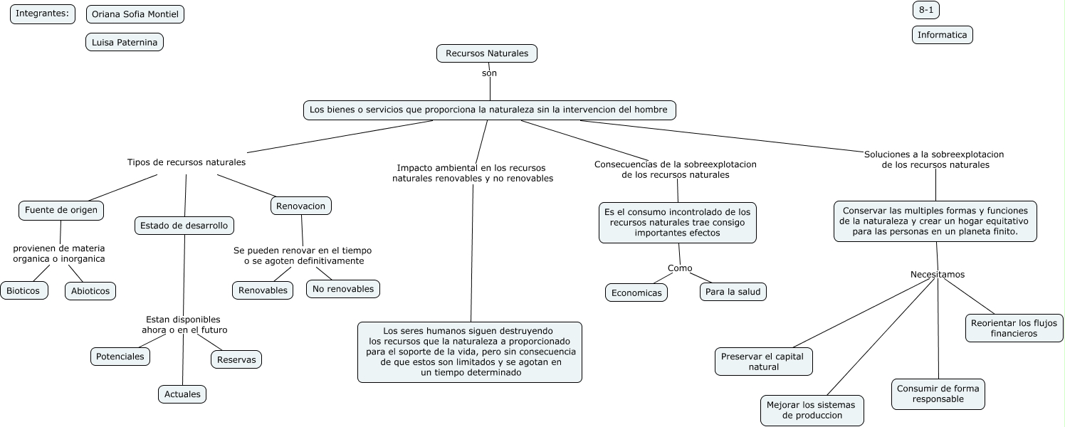 Este Cmap, tiene información relacionada con: oriana, Los bienes o servicios que proporciona la naturaleza sin la intervencion del hombre Tipos de recursos naturales Fuente de origen, Los bienes o servicios que proporciona la naturaleza sin la intervencion del hombre Tipos de recursos naturales Estado de desarrollo, Estado de desarrollo Estan disponibles ahora o en el futuro Reservas, Los bienes o servicios que proporciona la naturaleza sin la intervencion del hombre Consecuencias de la sobreexplotacion de los recursos naturales Es el consumo incontrolado de los recursos naturales trae consigo importantes efectos, Los bienes o servicios que proporciona la naturaleza sin la intervencion del hombre Soluciones a la sobreexplotacion de los recursos naturales Conservar las multiples formas y funciones de la naturaleza y crear un hogar equitativo para las personas en un planeta finito., Estado de desarrollo Estan disponibles ahora o en el futuro Actuales, Renovacion Se pueden renovar en el tiempo o se agoten definitivamente Renovables, Estado de desarrollo Estan disponibles ahora o en el futuro Potenciales, Conservar las multiples formas y funciones de la naturaleza y crear un hogar equitativo para las personas en un planeta finito. Necesitamos Consumir de forma responsable, Conservar las multiples formas y funciones de la naturaleza y crear un hogar equitativo para las personas en un planeta finito. Necesitamos Reorientar los flujos financieros, Es el consumo incontrolado de los recursos naturales trae consigo importantes efectos Como Para la salud, Renovacion Se pueden renovar en el tiempo o se agoten definitivamente No renovables, Fuente de origen provienen de materia organica o inorganica Bioticos, Conservar las multiples formas y funciones de la naturaleza y crear un hogar equitativo para las personas en un planeta finito. Necesitamos Mejorar los sistemas de produccion, Es el consumo incontrolado de los recursos naturales trae consigo importantes efectos Como Economicas, Recursos Naturales son Los bienes o servicios que proporciona la naturaleza sin la intervencion del hombre, Los bienes o servicios que proporciona la naturaleza sin la intervencion del hombre Tipos de recursos naturales Renovacion, Fuente de origen provienen de materia organica o inorganica Abioticos, Conservar las multiples formas y funciones de la naturaleza y crear un hogar equitativo para las personas en un planeta finito. Necesitamos Preservar el capital natural, Los bienes o servicios que proporciona la naturaleza sin la intervencion del hombre Impacto ambiental en los recursos naturales renovables y no renovables Los seres humanos siguen destruyendo los recursos que la naturaleza a proporcionado para el soporte de la vida, pero sin consecuencia de que estos son limitados y se agotan en un tiempo determinado