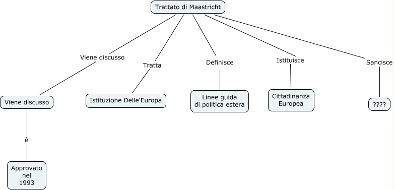 Questa Cmap, creata con IHMC CmapTools, contiene informazioni relative a: Trattato di Maastricht, Trattato di Maastricht Viene discusso Viene discusso, Trattato di Maastricht Definisce Linee guida di politica estera, Trattato di Maastricht Istituisce Cittadinanza Europea, Viene discusso è Approvato nel 1993, Trattato di Maastricht Sancisce ????, Trattato di Maastricht Tratta Istituzione Delle'Europa
